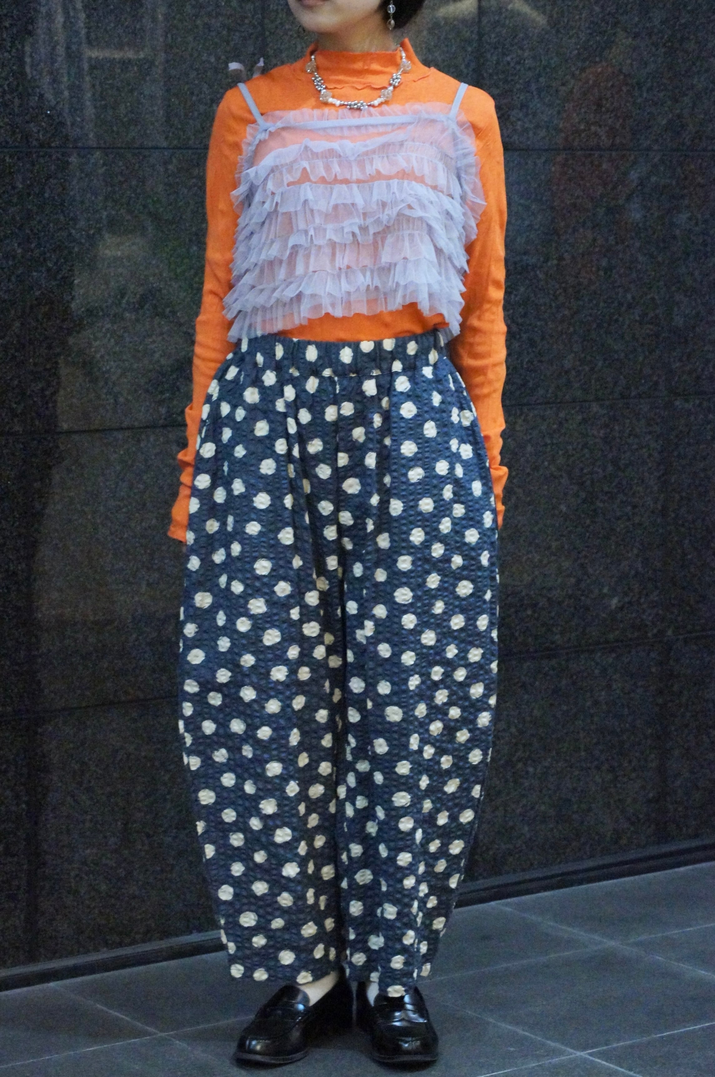 -RIPPLE CROSS RANDOM DOT EGG PANTS-