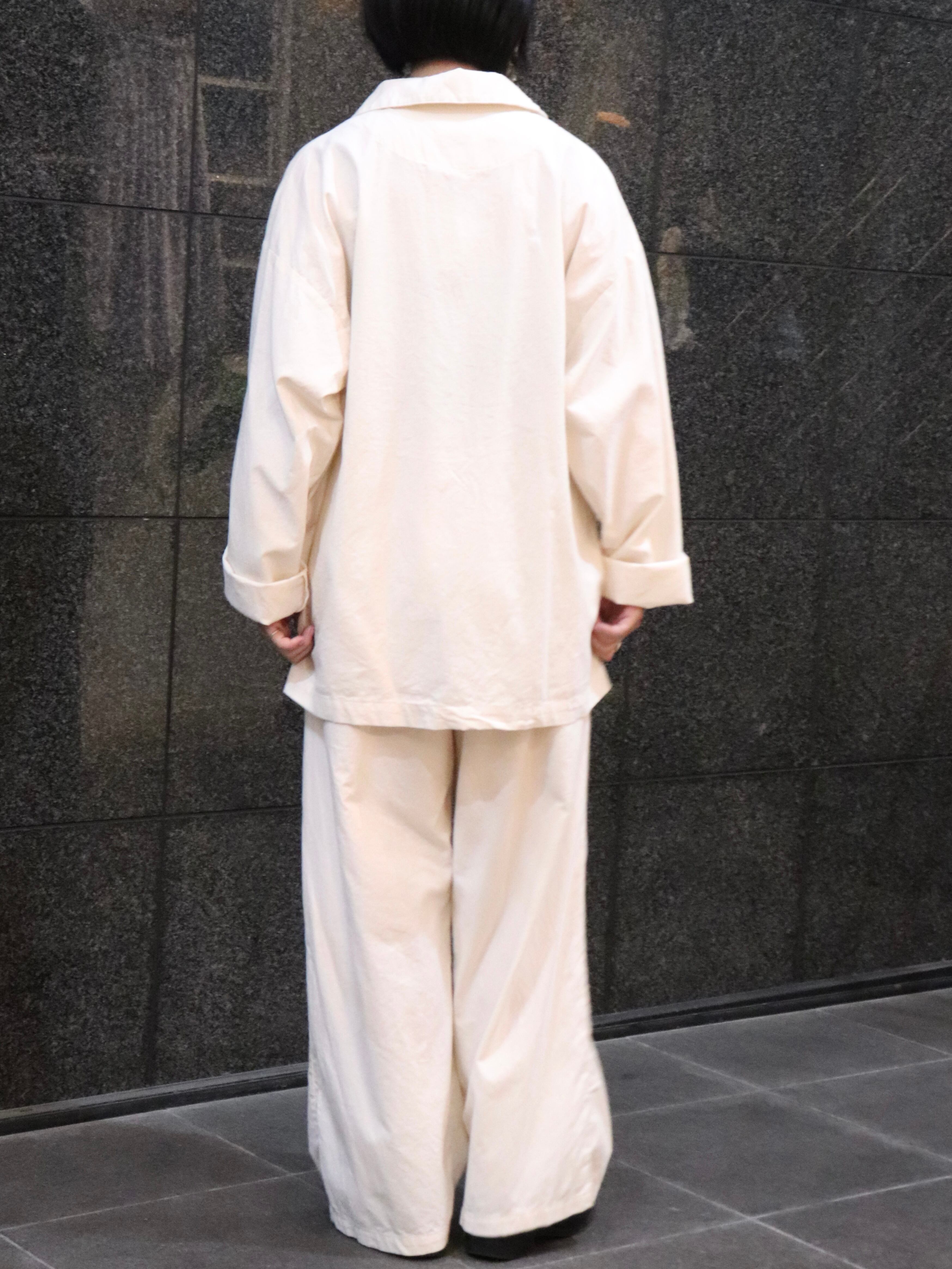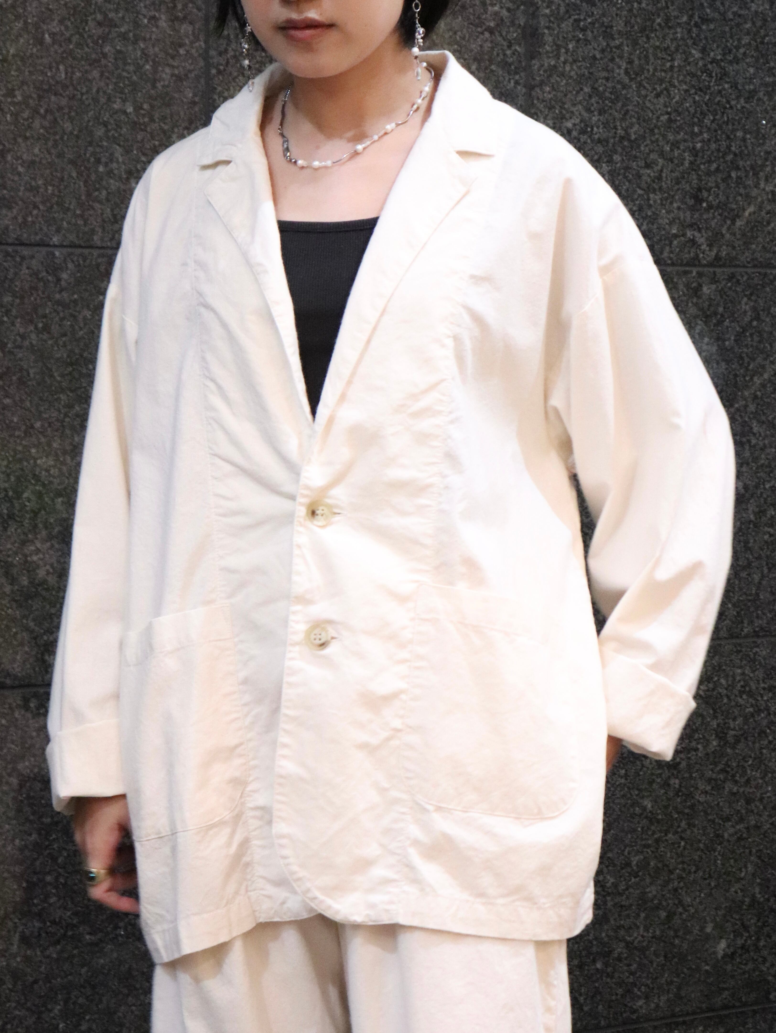 テーラードジャケットのきちんと感を残しながらも、軽快でナチュラルな雰囲気を演出します。カーディガン感覚で羽織れる軽さと、綿素材ならではの通気性・扱いやすさも魅力。季節の変わり目に重宝する一着です。