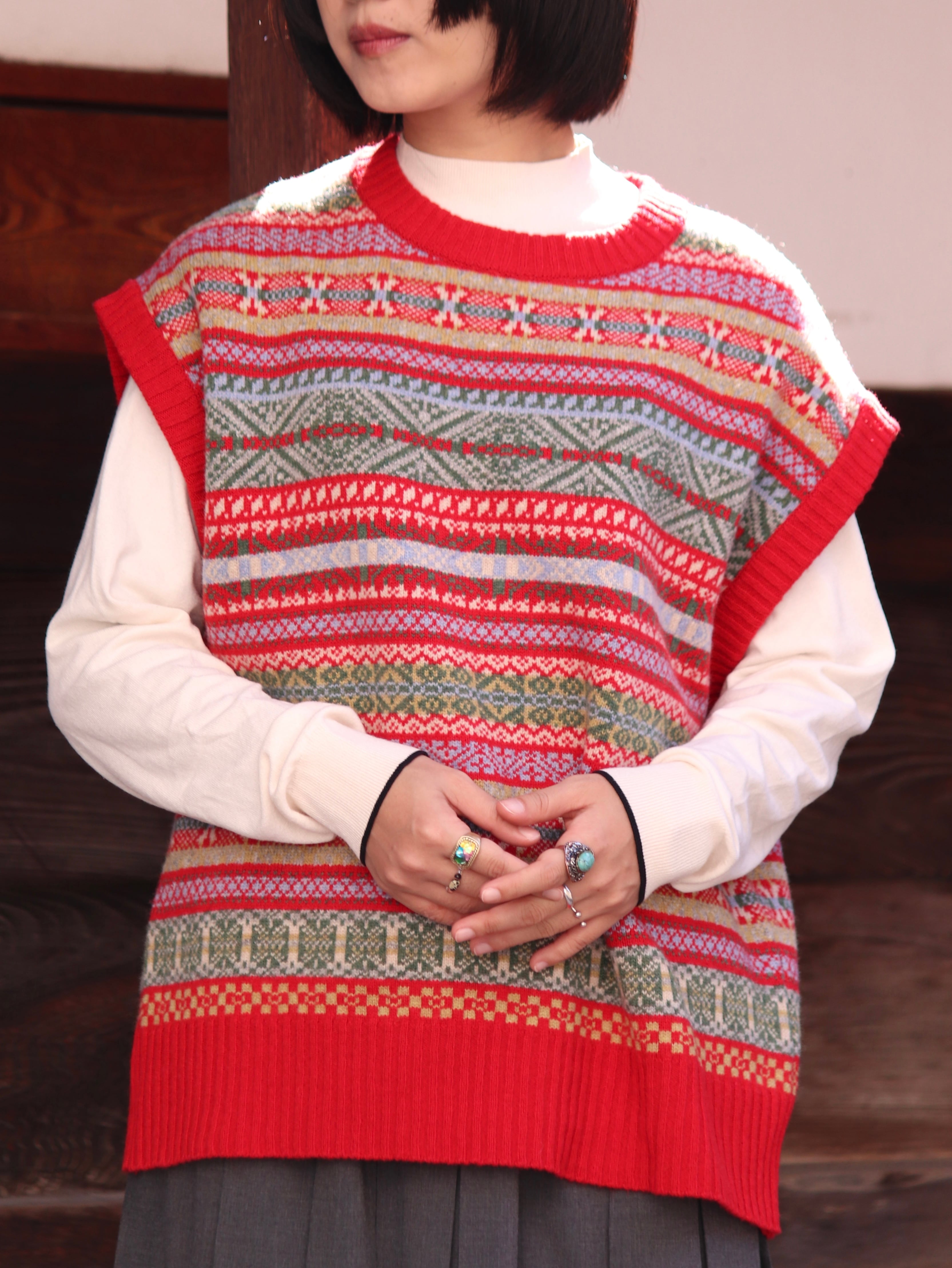 -FAIR ISLE PATTERN KNIT VEST-