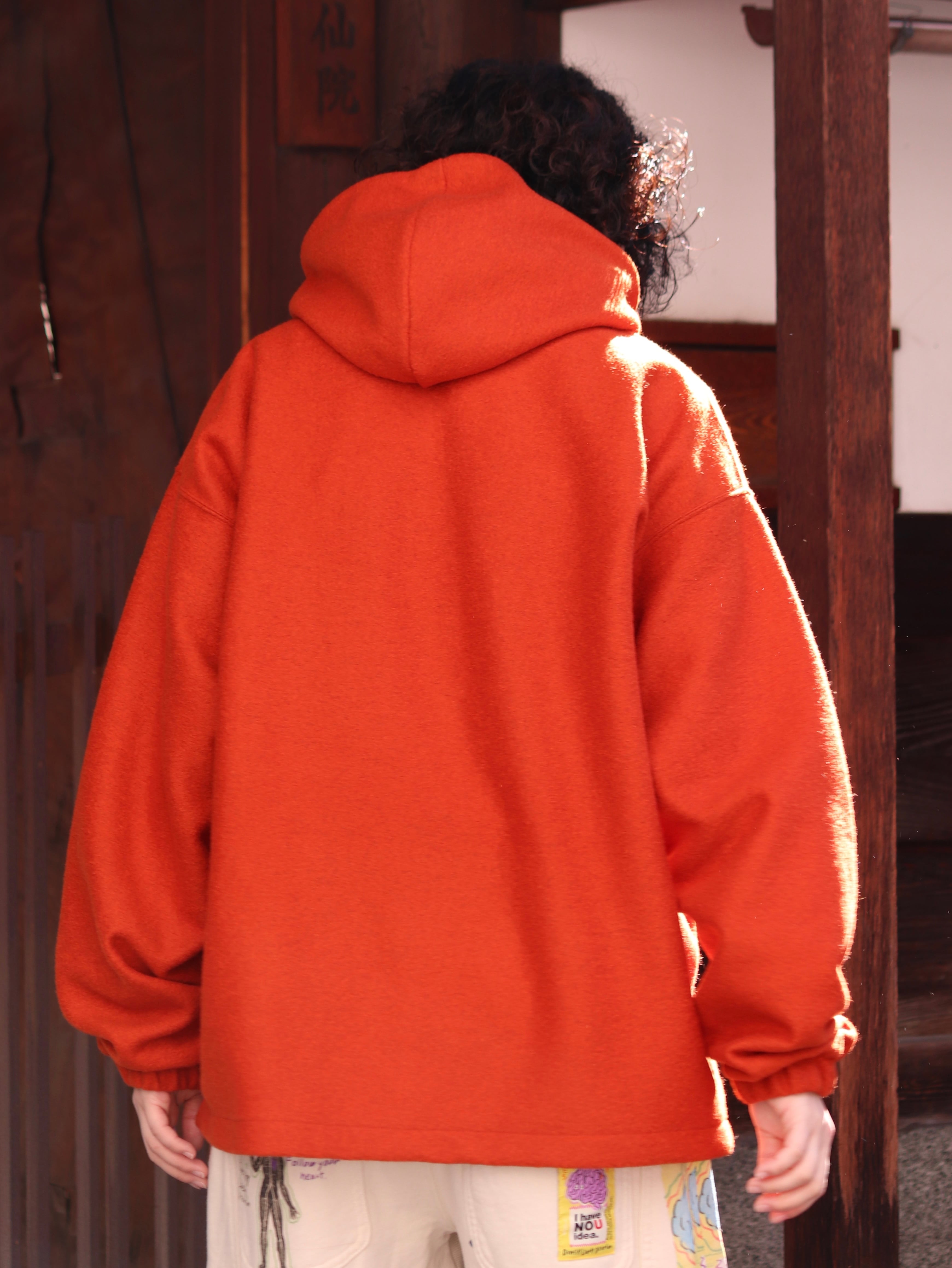 凹凸のあるウールループの表情と温かみを活かし、アウター感覚で着用できるようにリブをなくしゆったりとしたデザイン、シルエット感となっています。