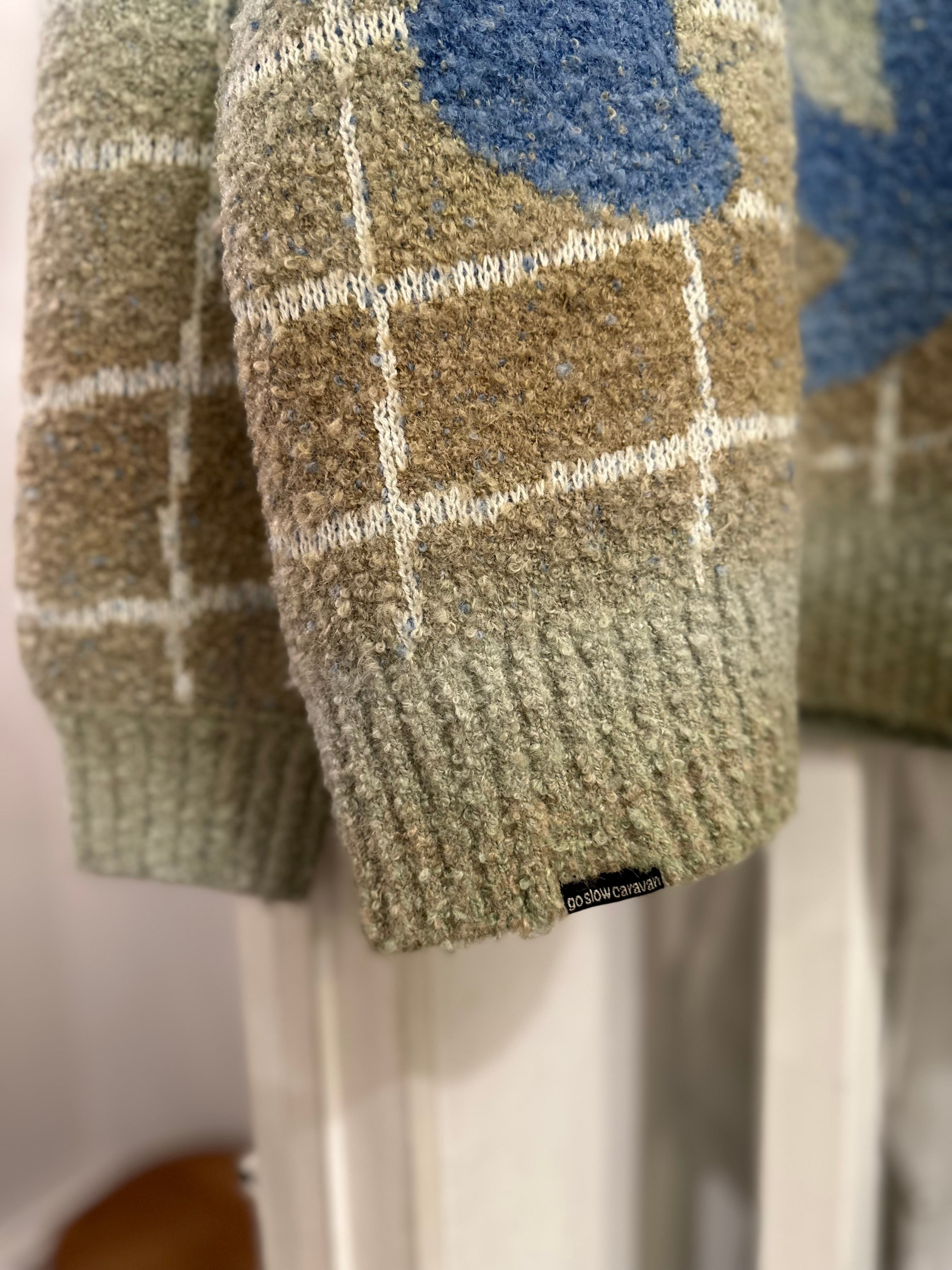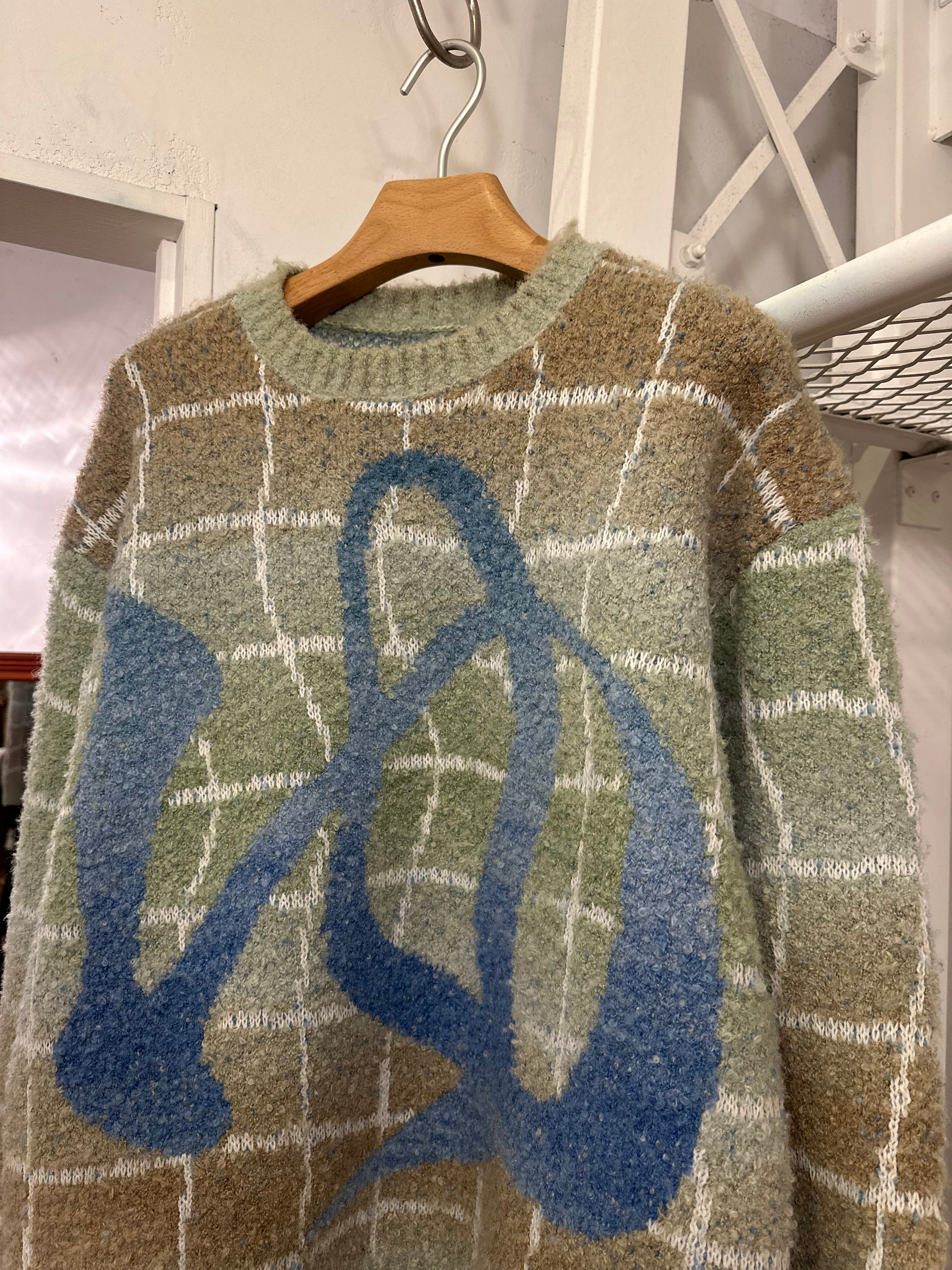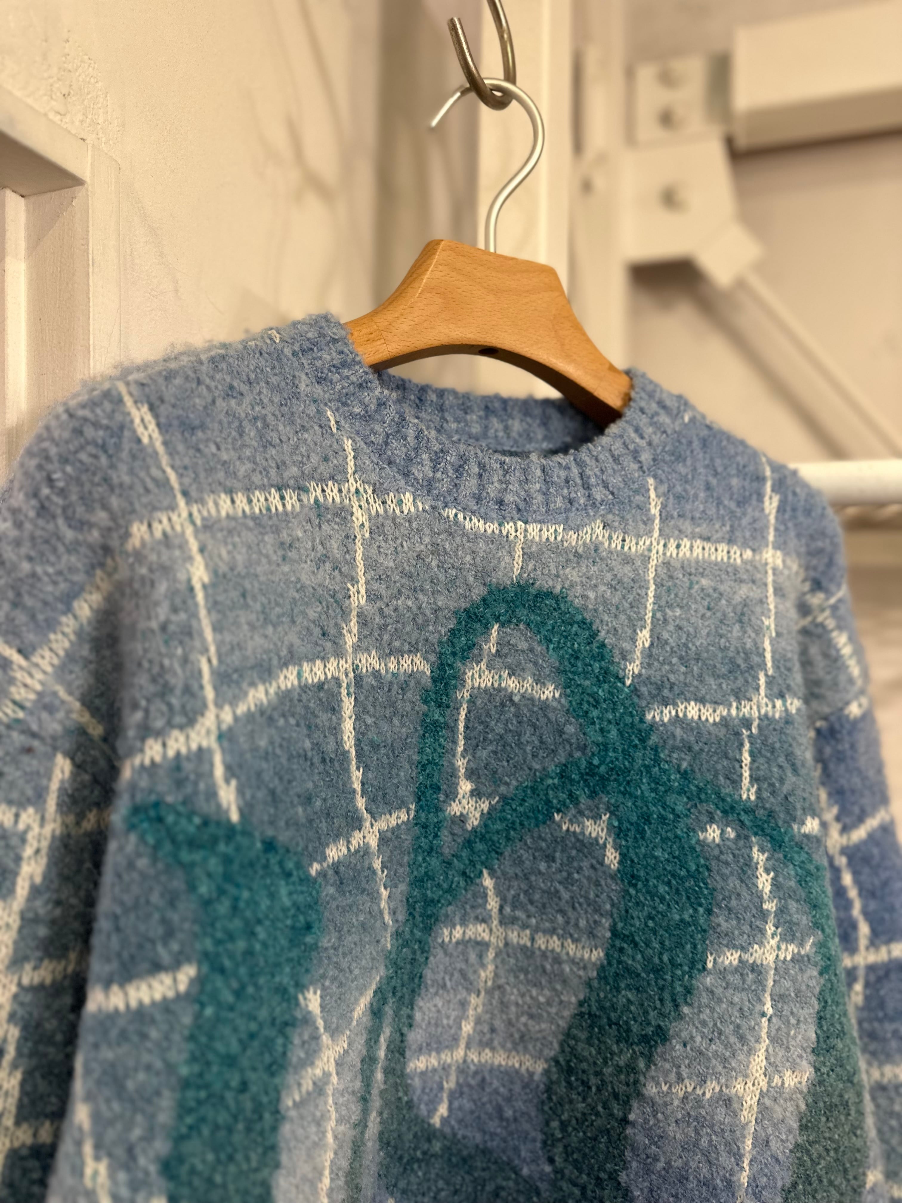 ブークレ糸をメインに銭湯をイメージして編み立てた「ゆ」セーター。