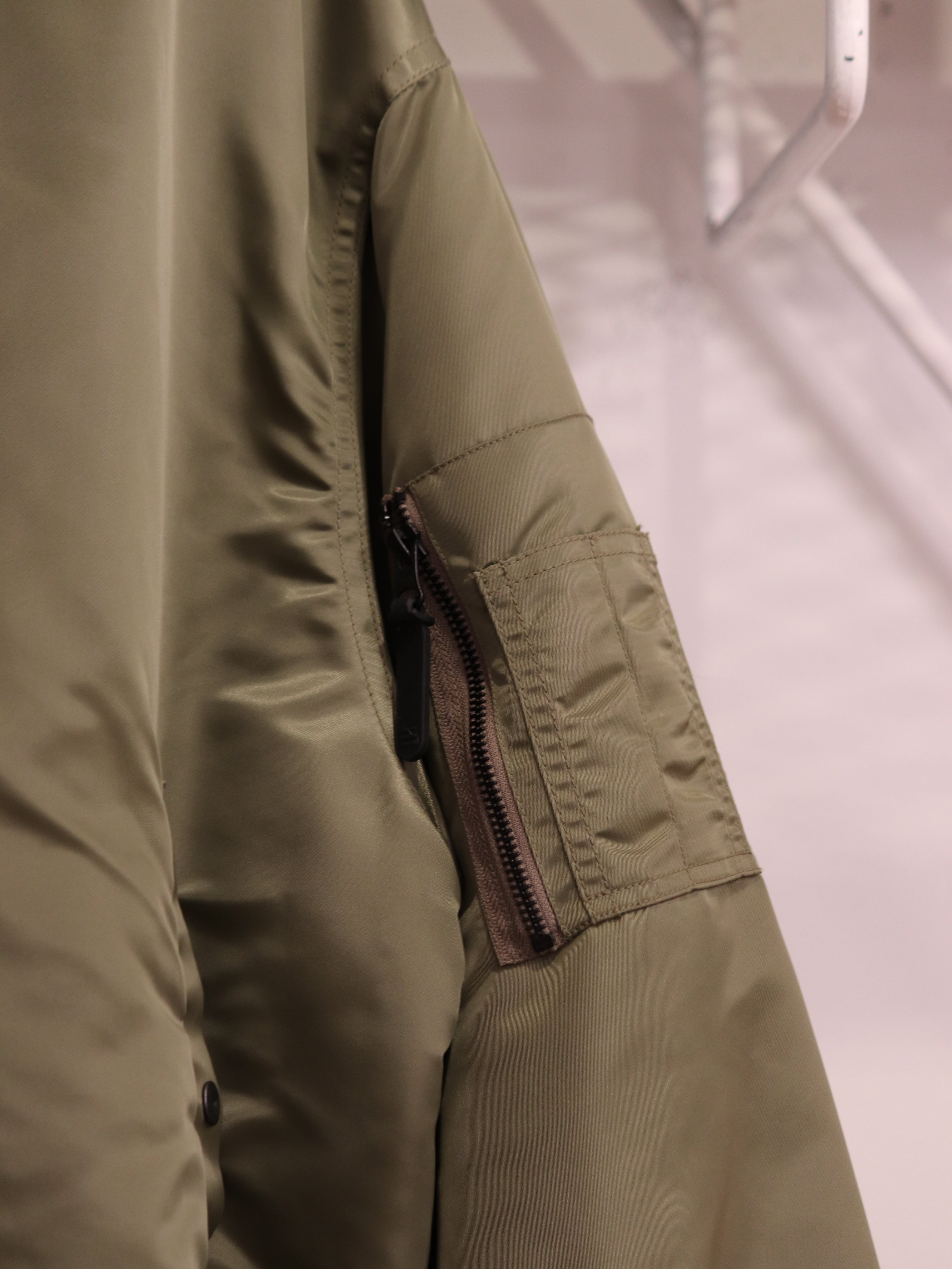 1950年代にアメリカ空軍が開発した”MA-1”をベースに、着丈を長めにした抜け感のあるジェンダーレスなスタイル、サイズバランスに仕上げたフライトジャケットです。
