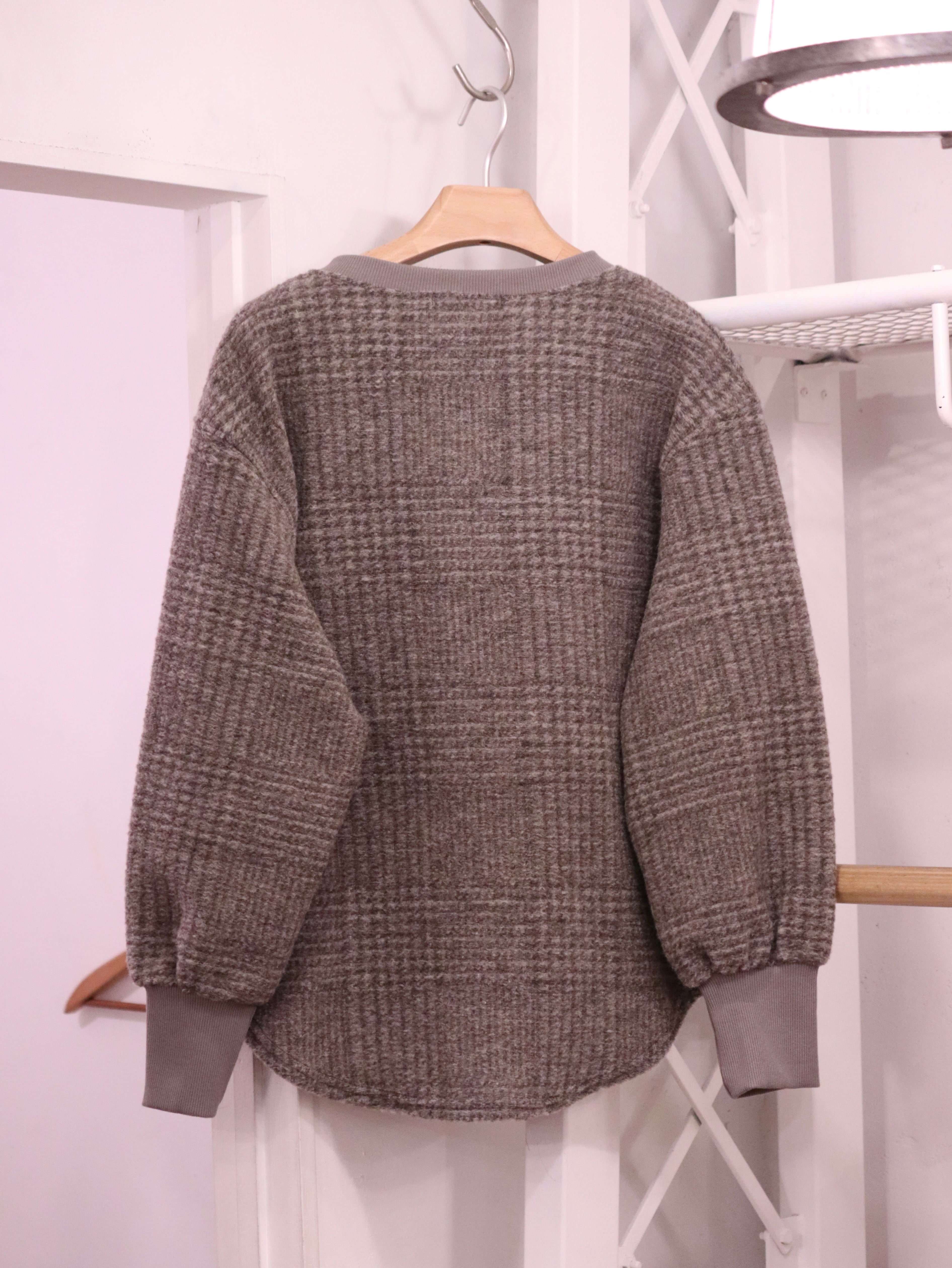 ネックラインと袖口のリブ編みが着こなしにアクセントをプラスしてくれます。