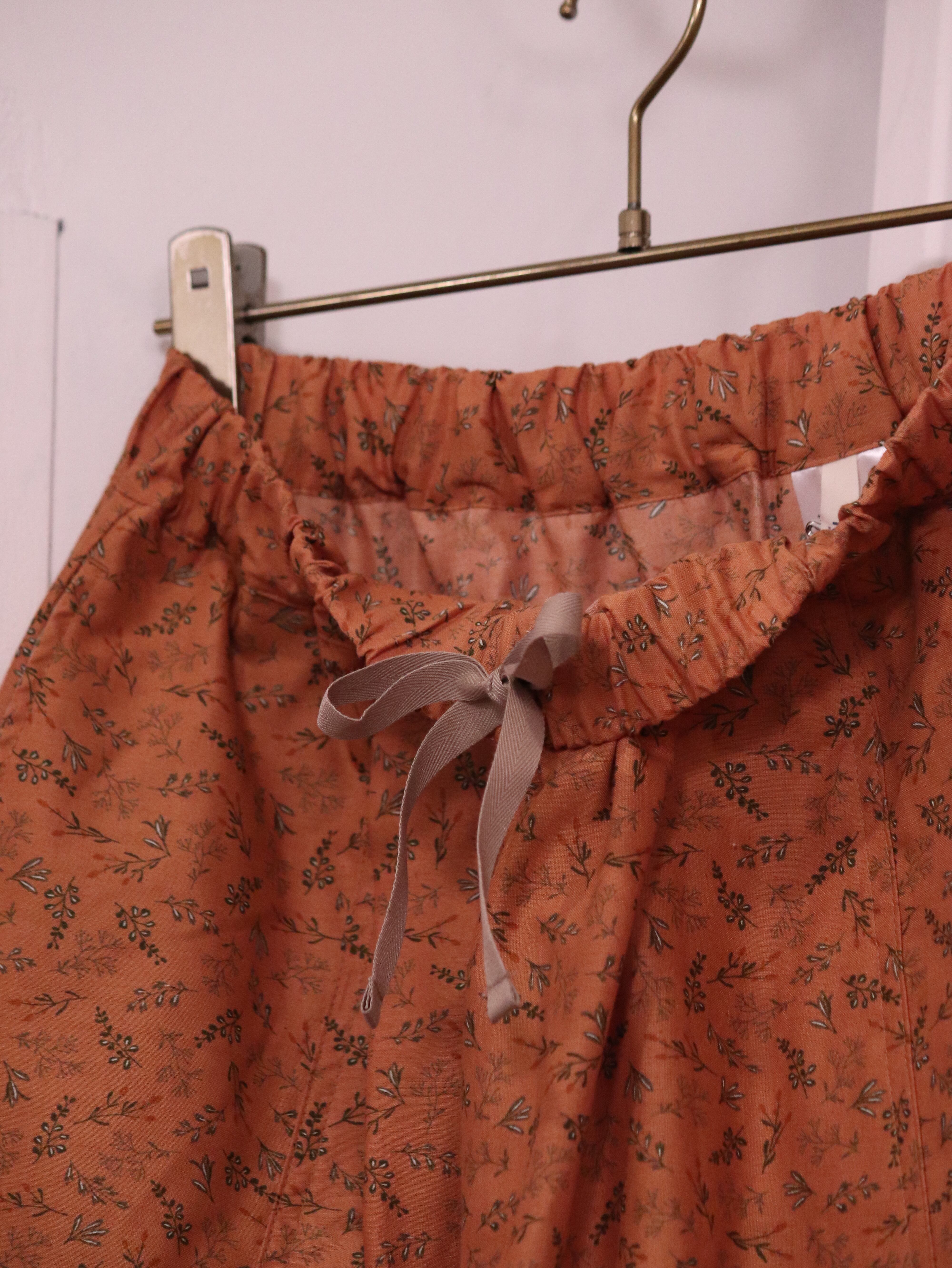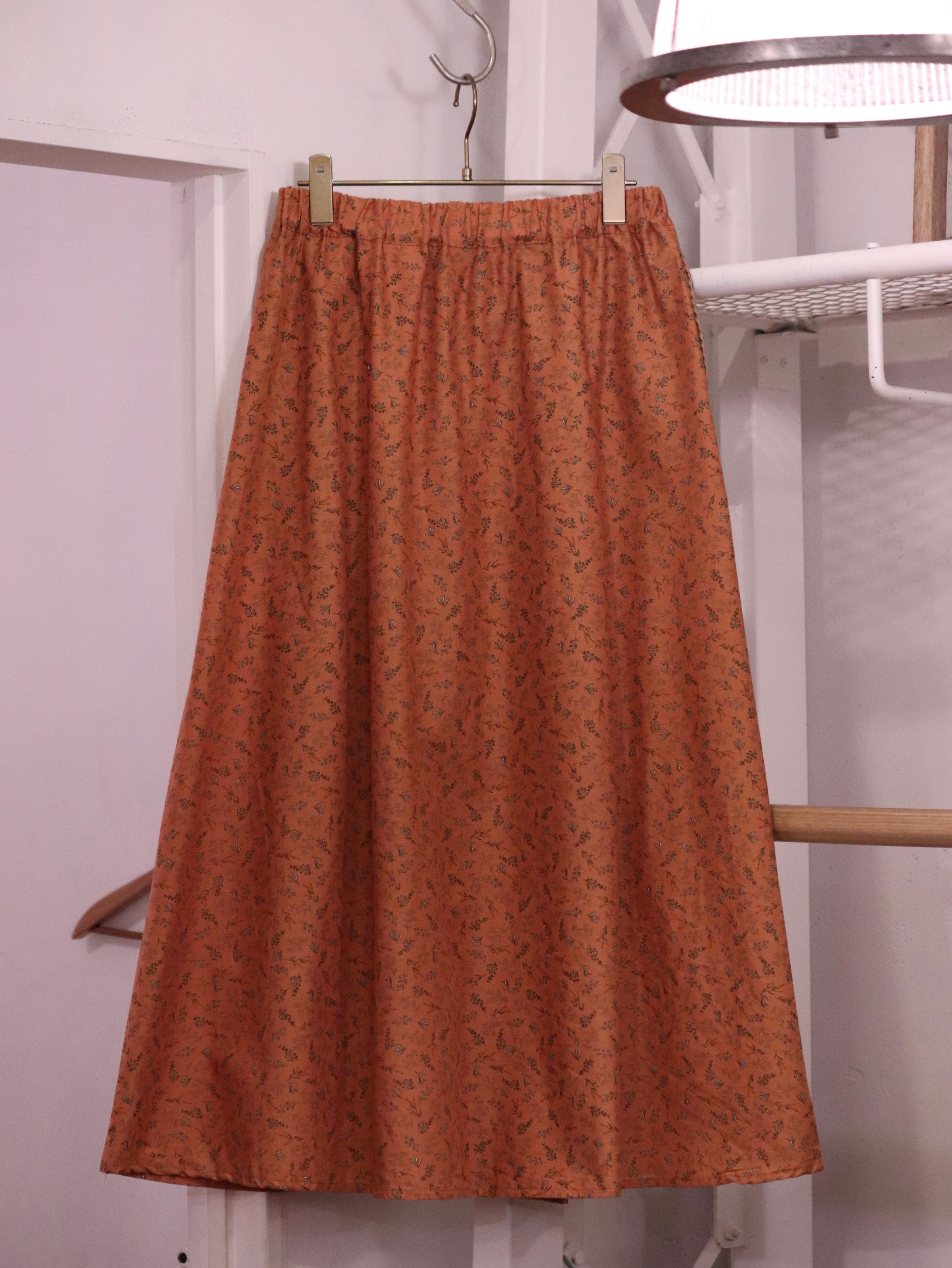 薄手ながらも織りがしっかりしているので、裾にかけて広がりのあるフレアスカートでも、重くなりすぎずふんわりとしたシルエットです。