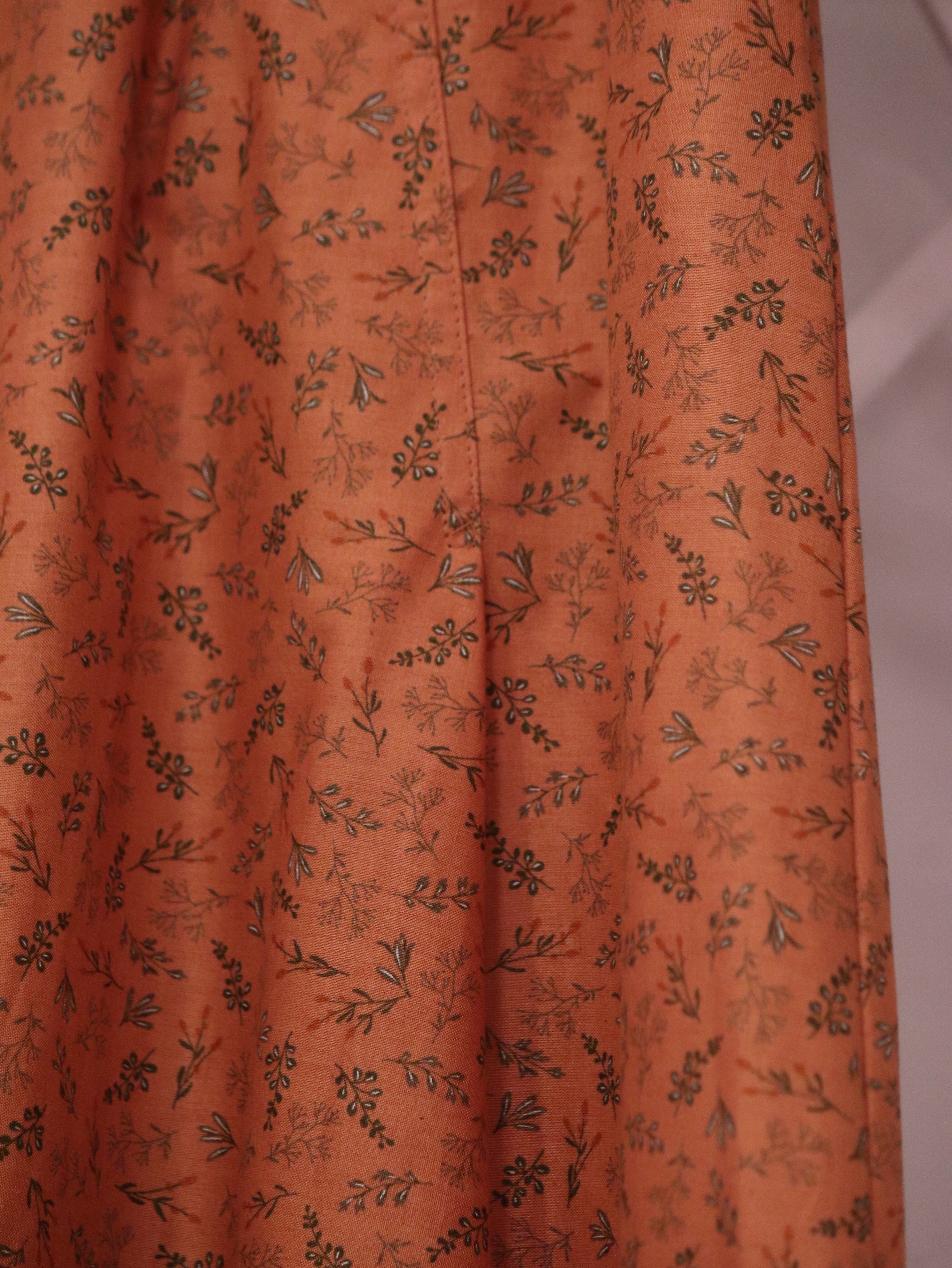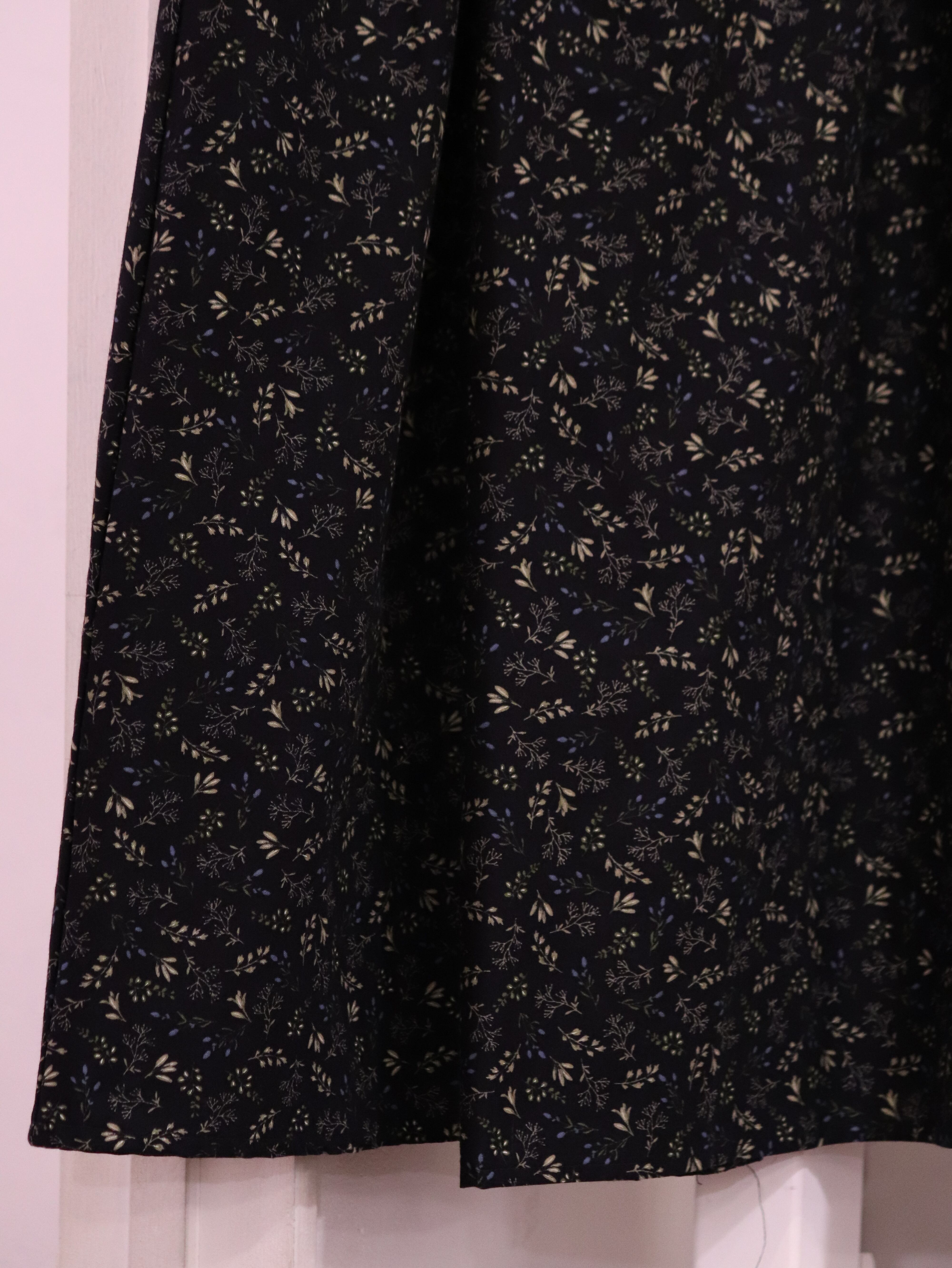 小さな花柄がシックに配置されナチュラル感やヴィンテージ感のあるメランコリーフラワー柄が魅力の一着です。
