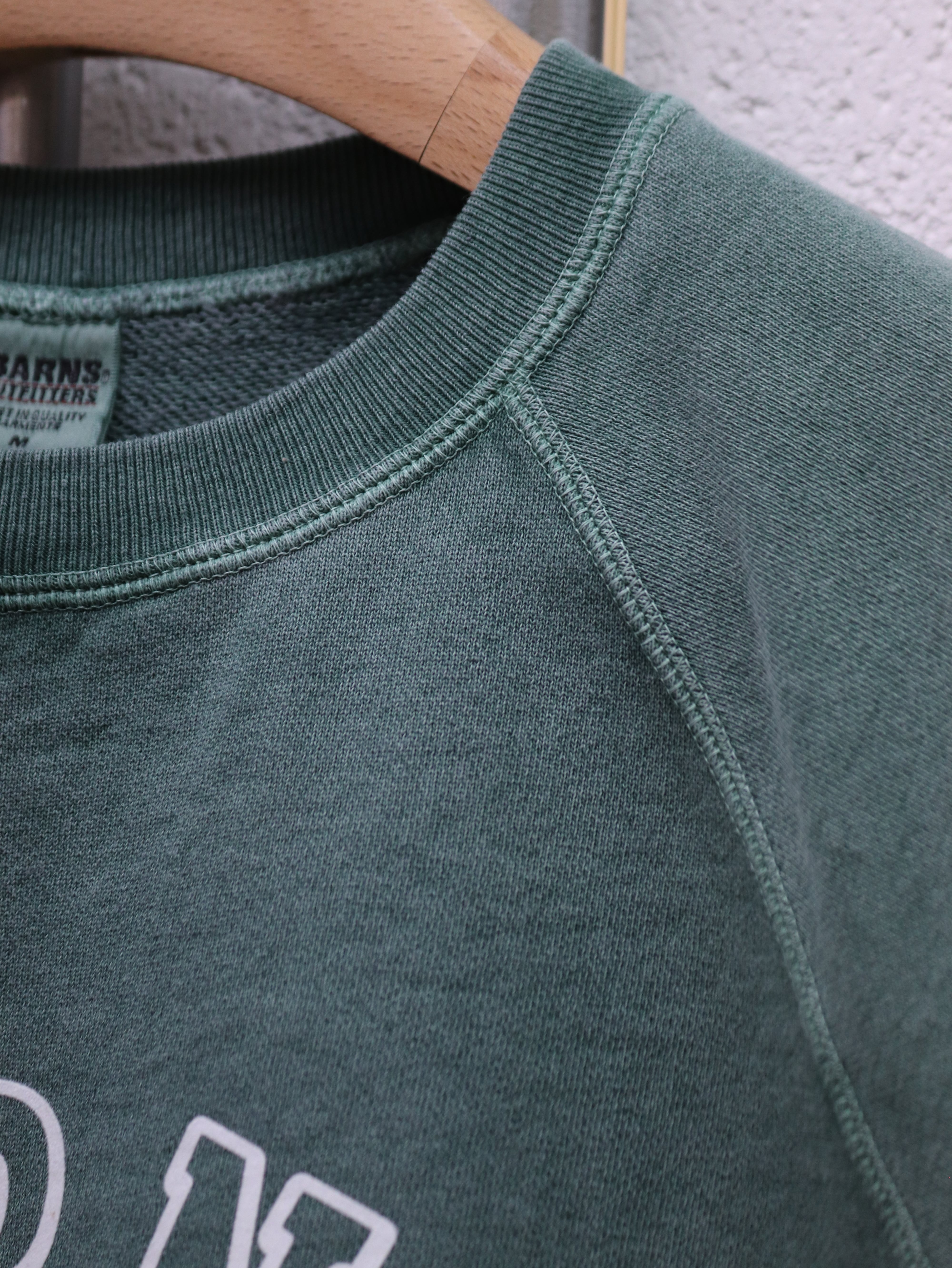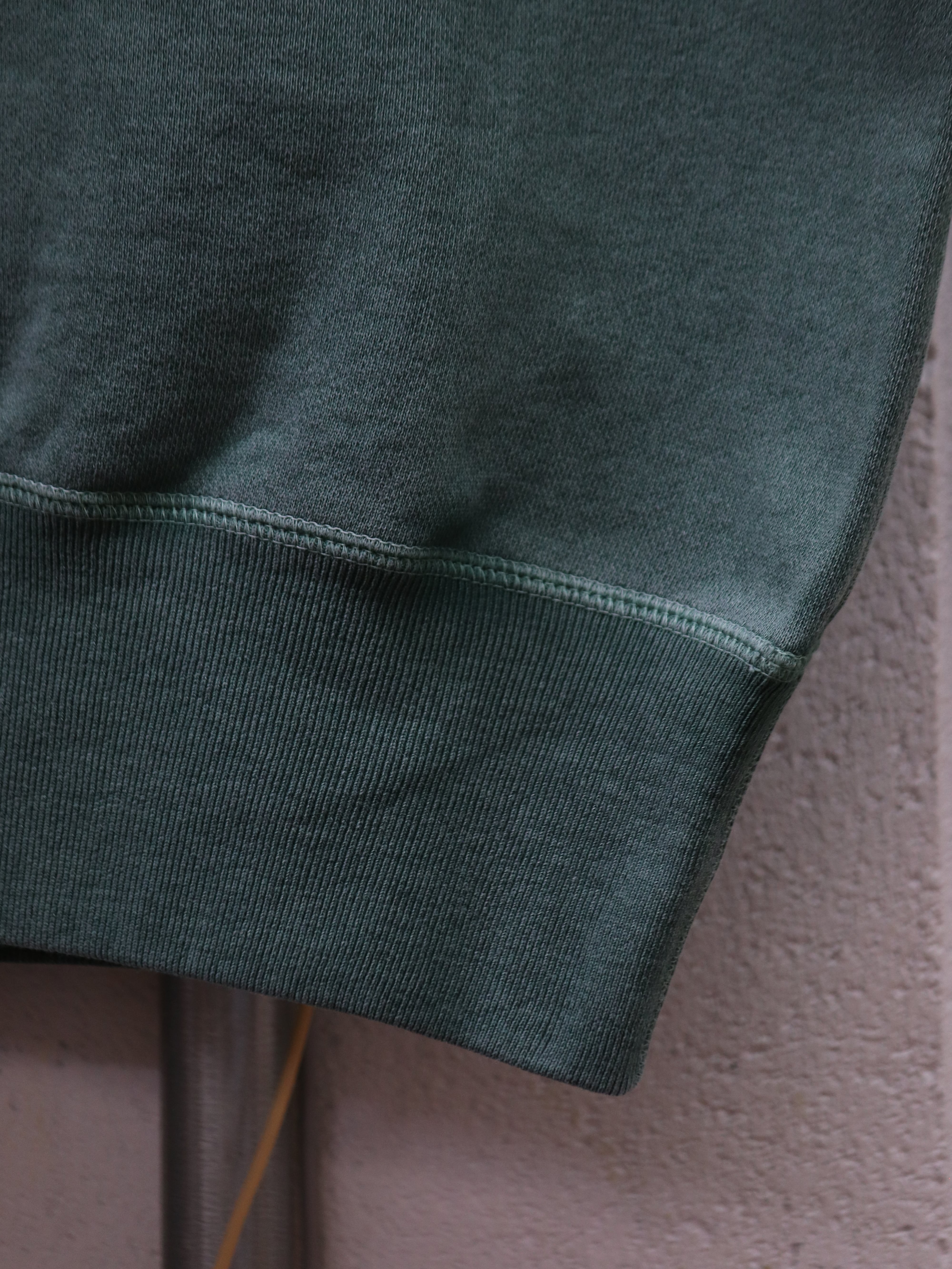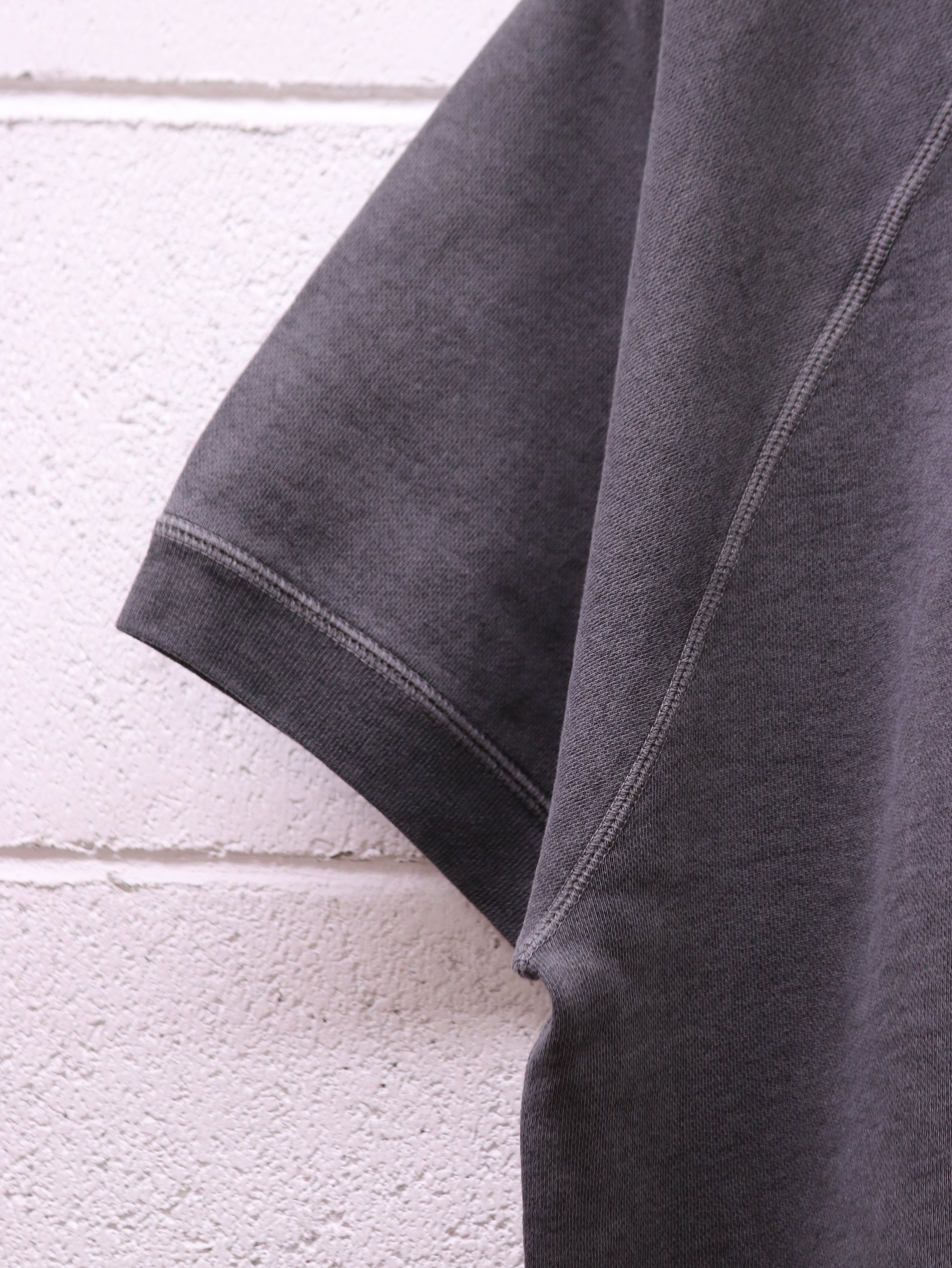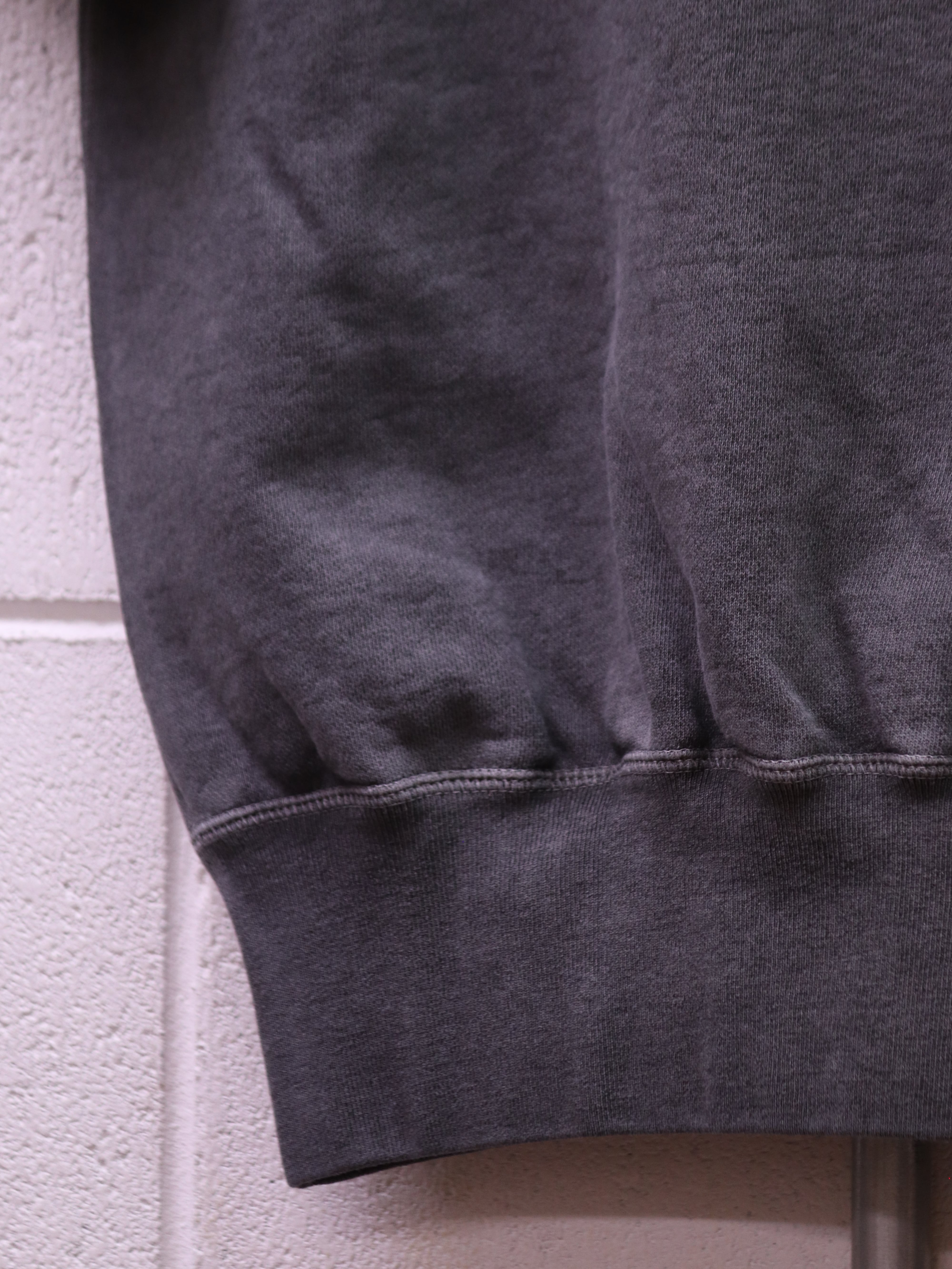 ボディは、90年代初期にみられたボックスシルエットのラグランスリーブスウェットの再現を目指した一枚となっています。袖口と裾口には効きすぎない程度のリブで、ヴィンテージ感がありながらも着心地の良さを兼ね備えています。