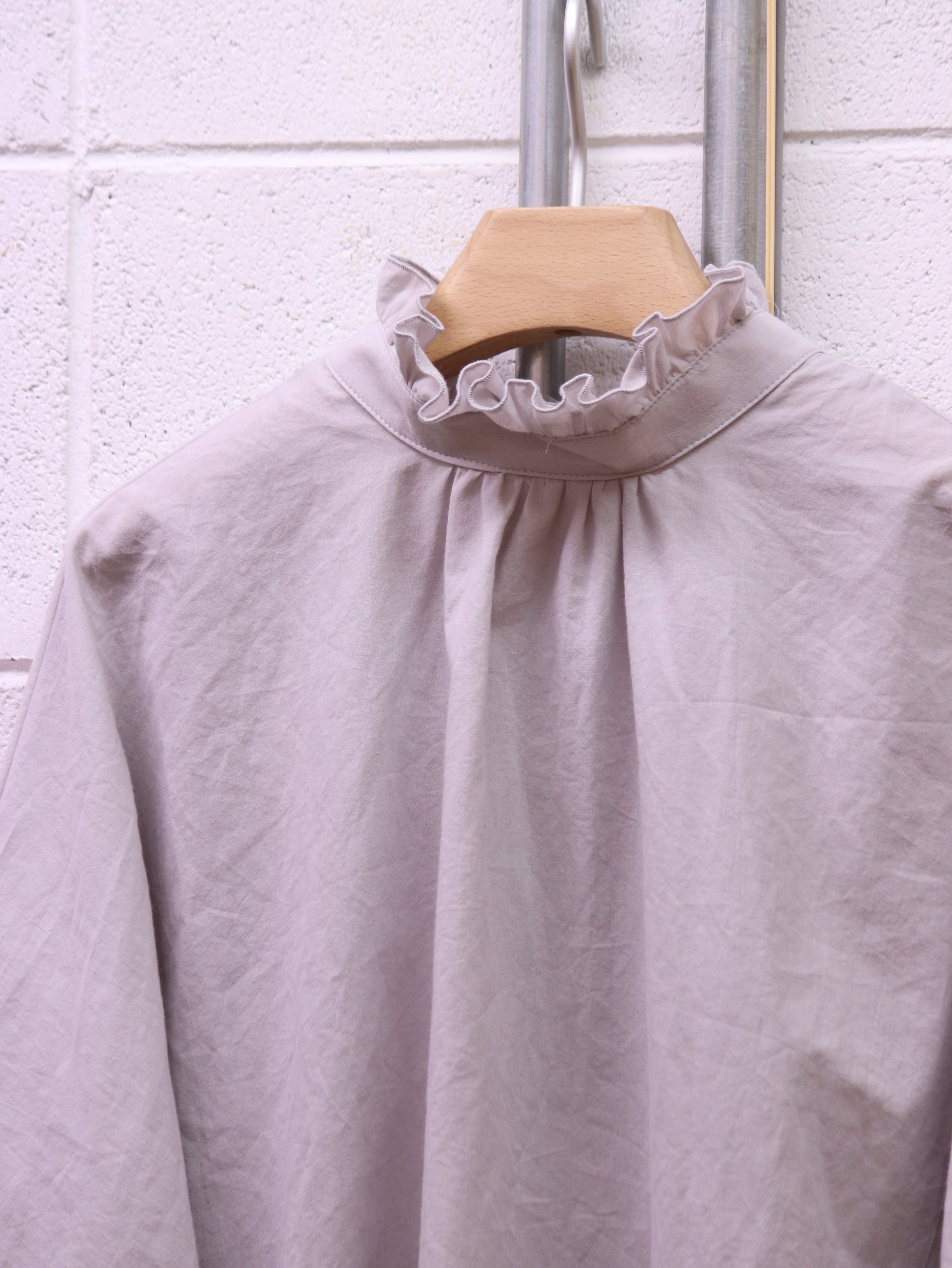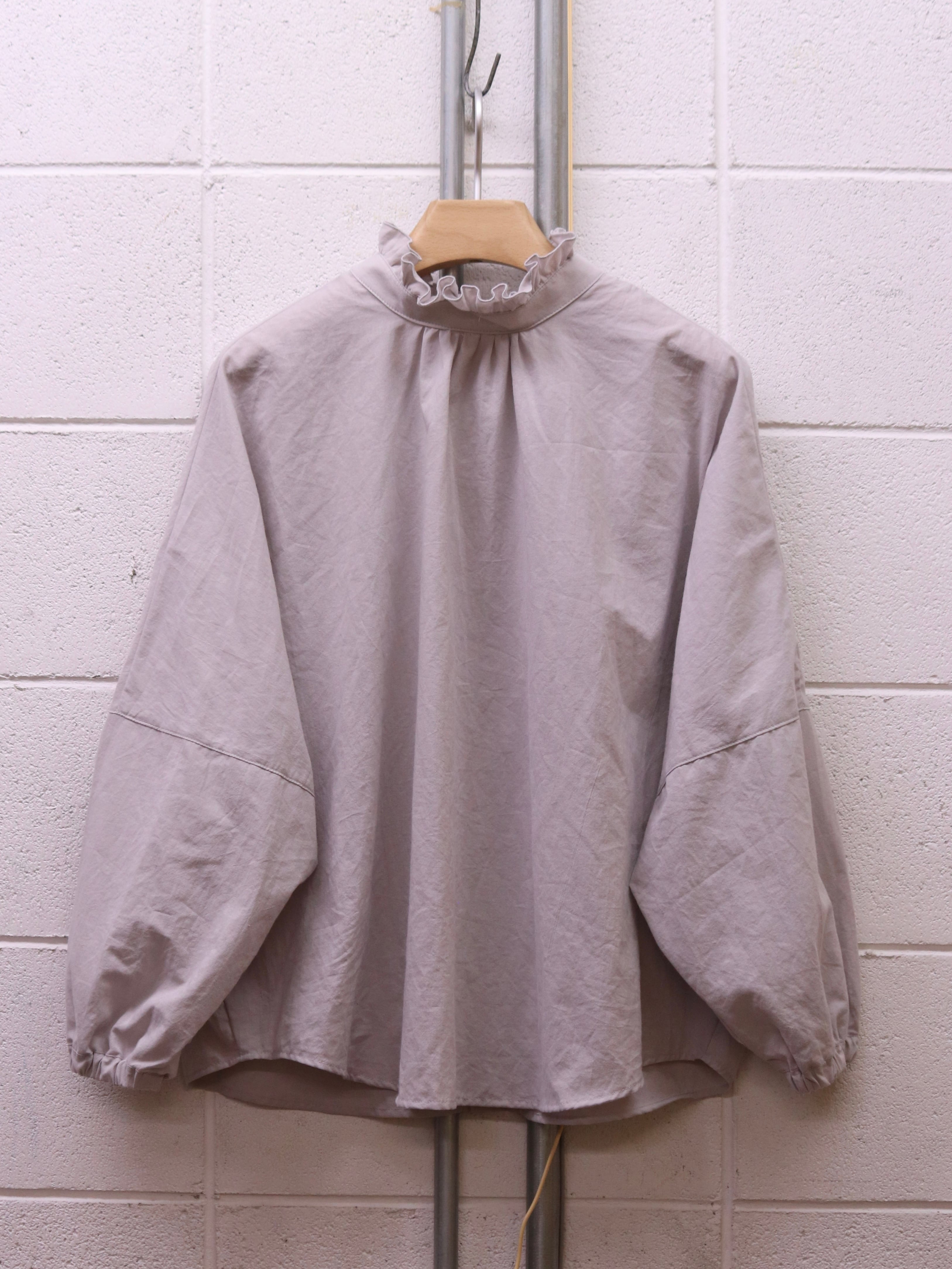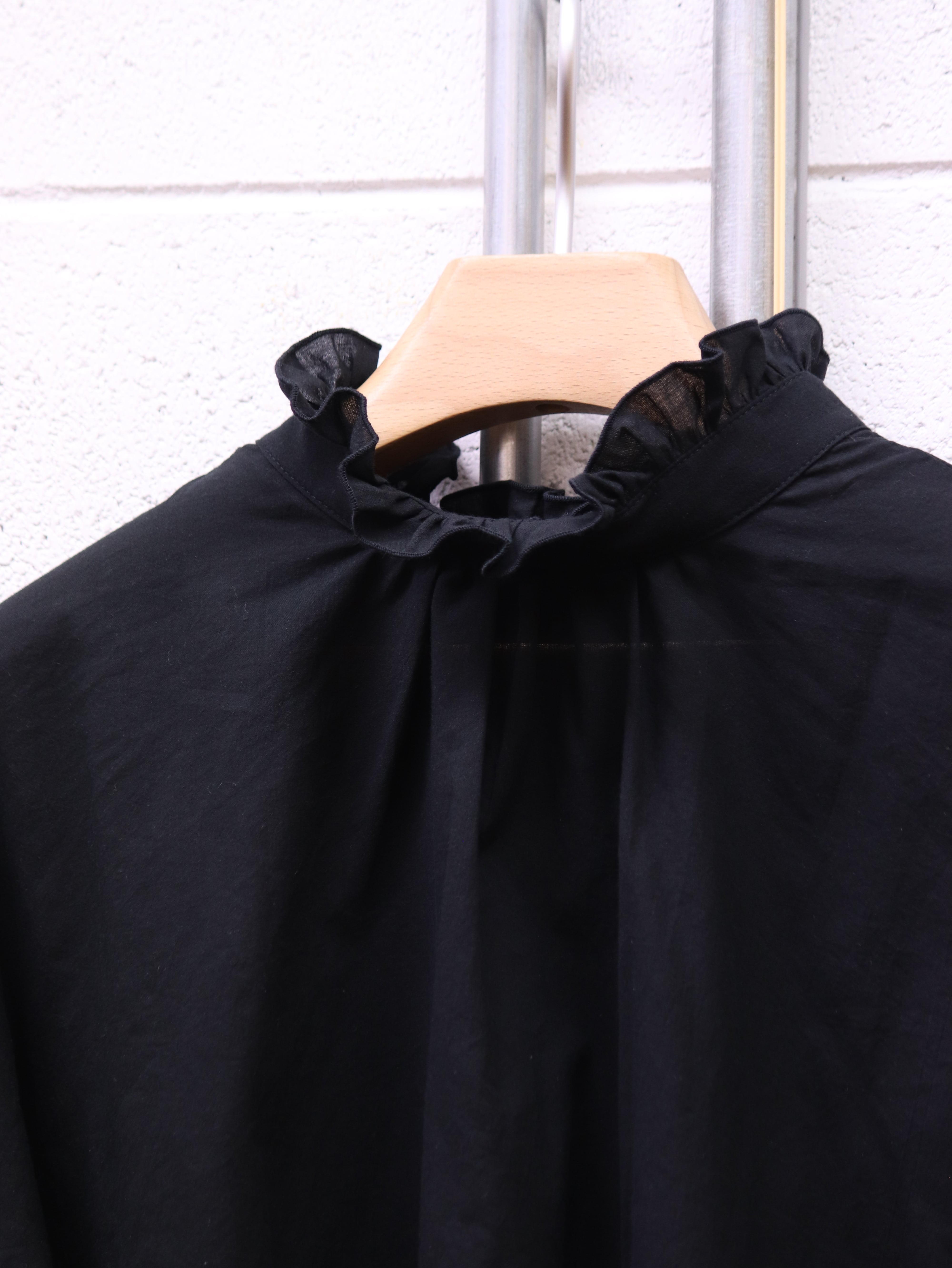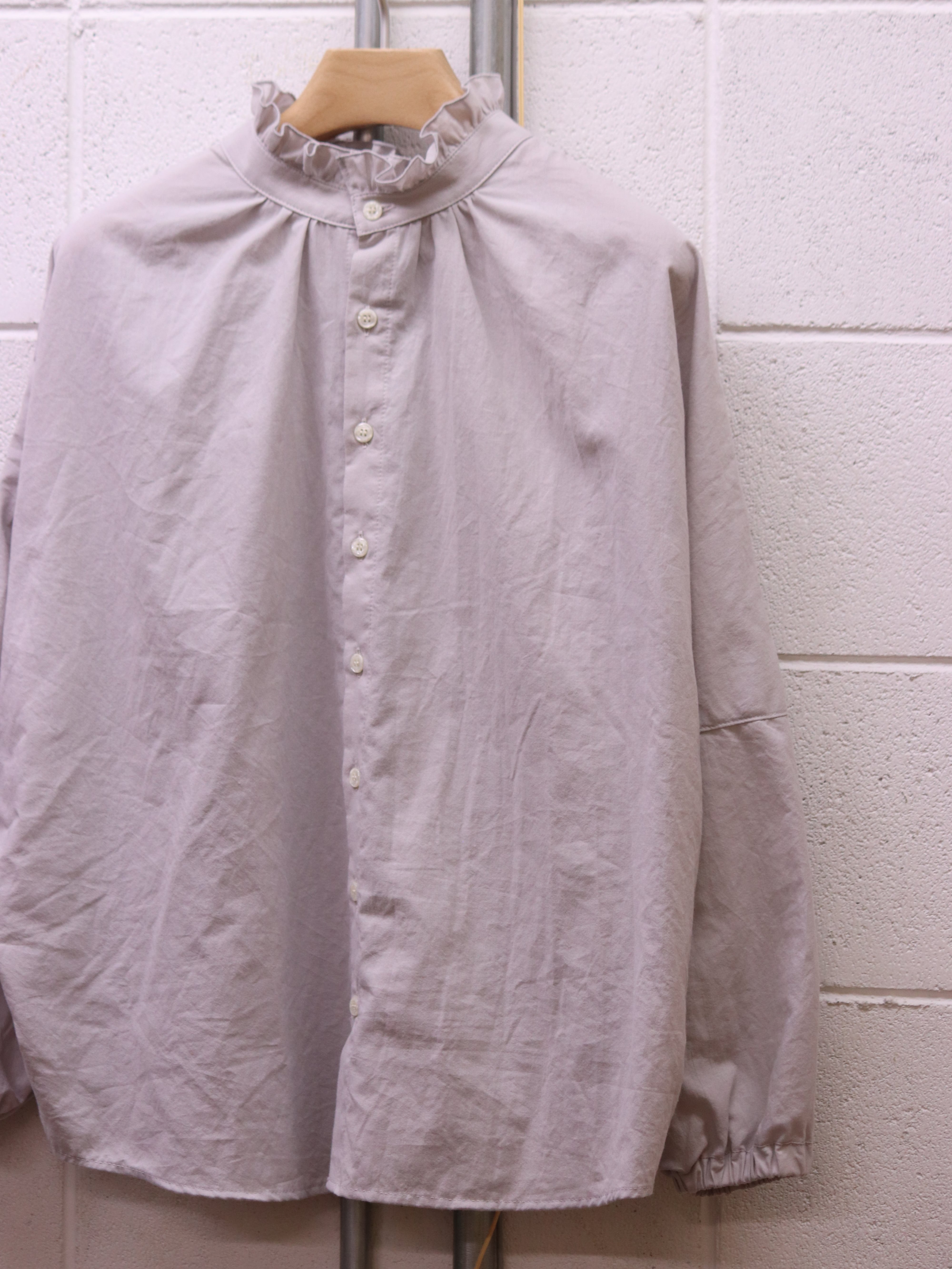ふんわりと広がるスリーブと、さりげないフリルカラー。クラシカルなムードを漂わせながらも、日常にそっと寄り添う、ブランド定番のふんわりローンチハヤシャツです。前後どちらを前にしても着られる2WAY仕様なので、その日の気分で表情を変えられるのも魅力です。