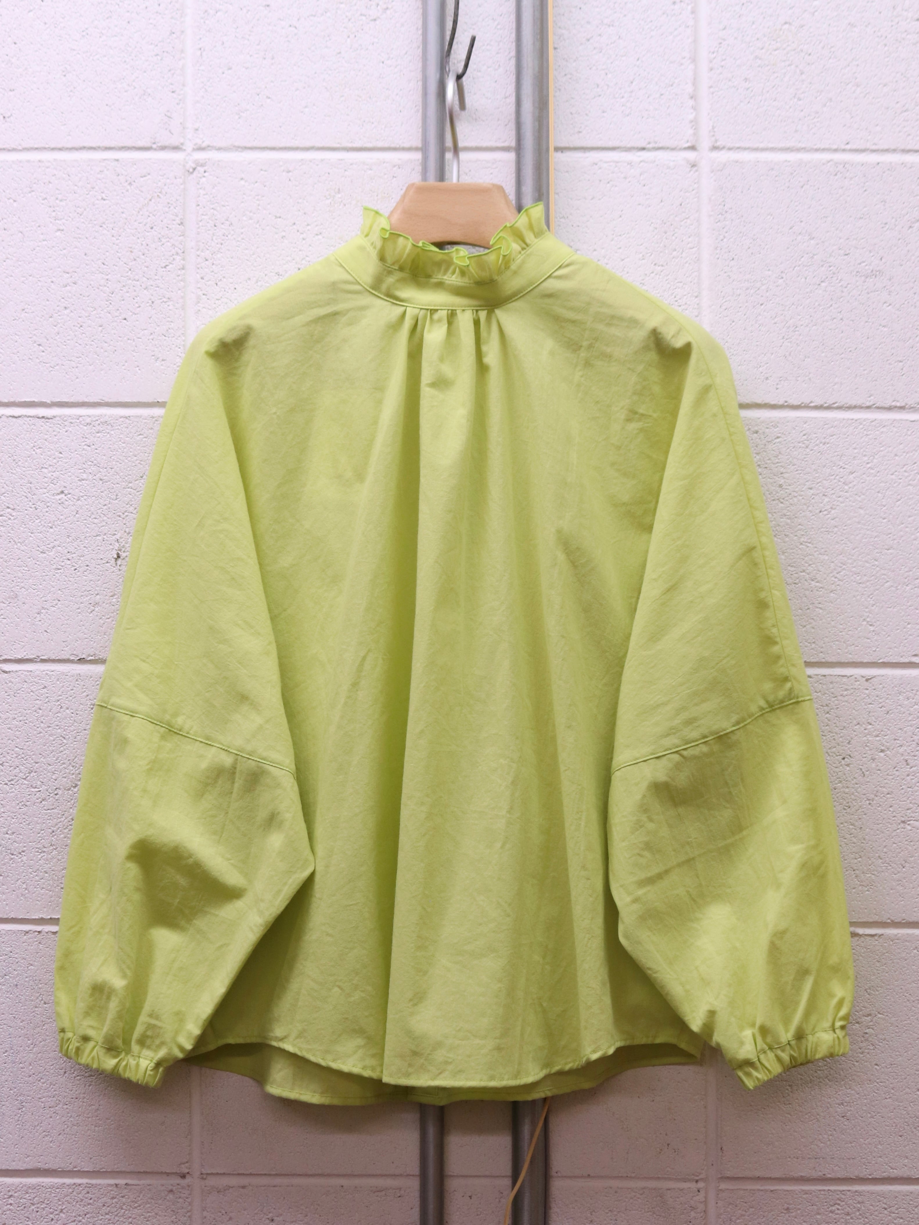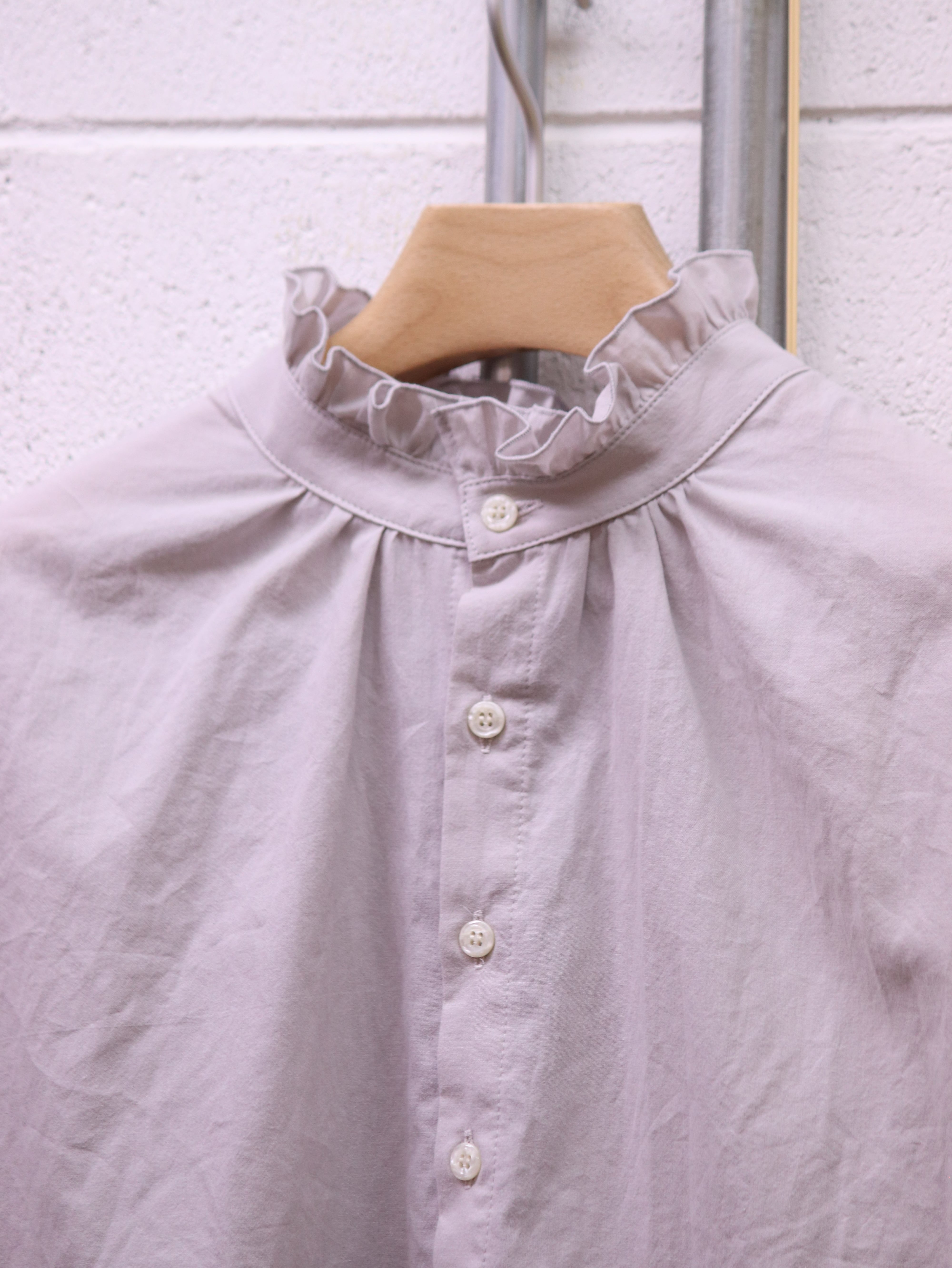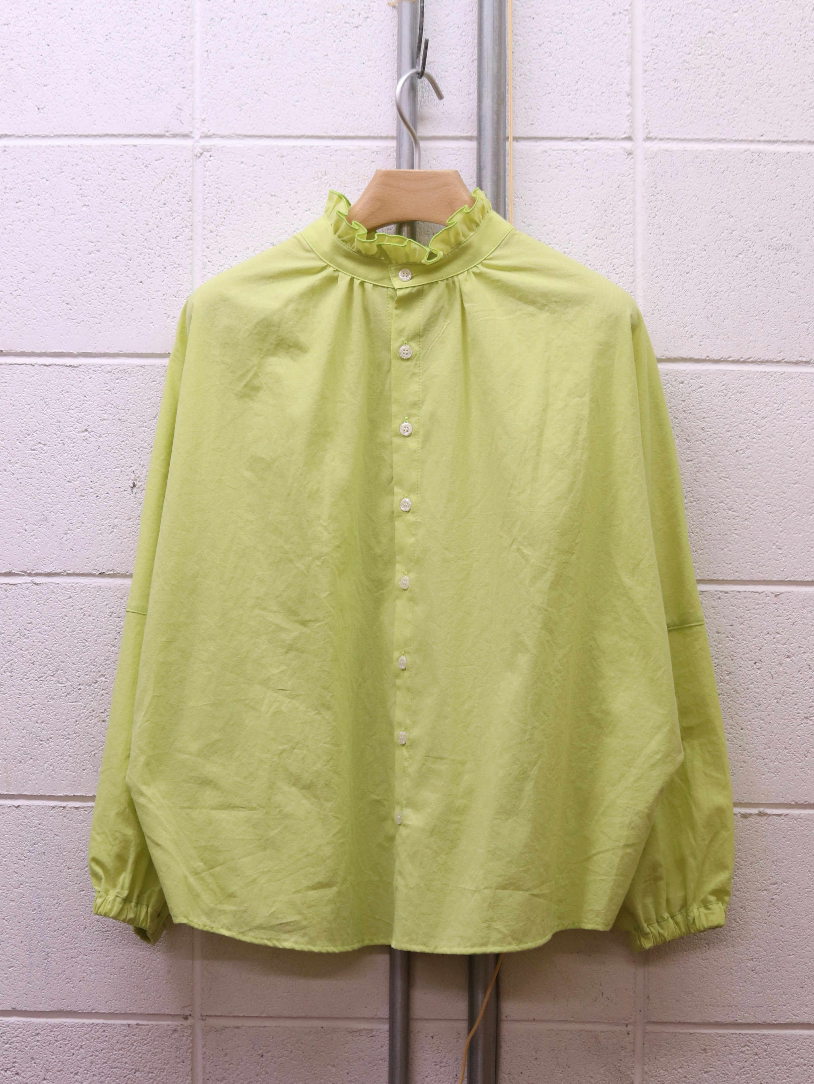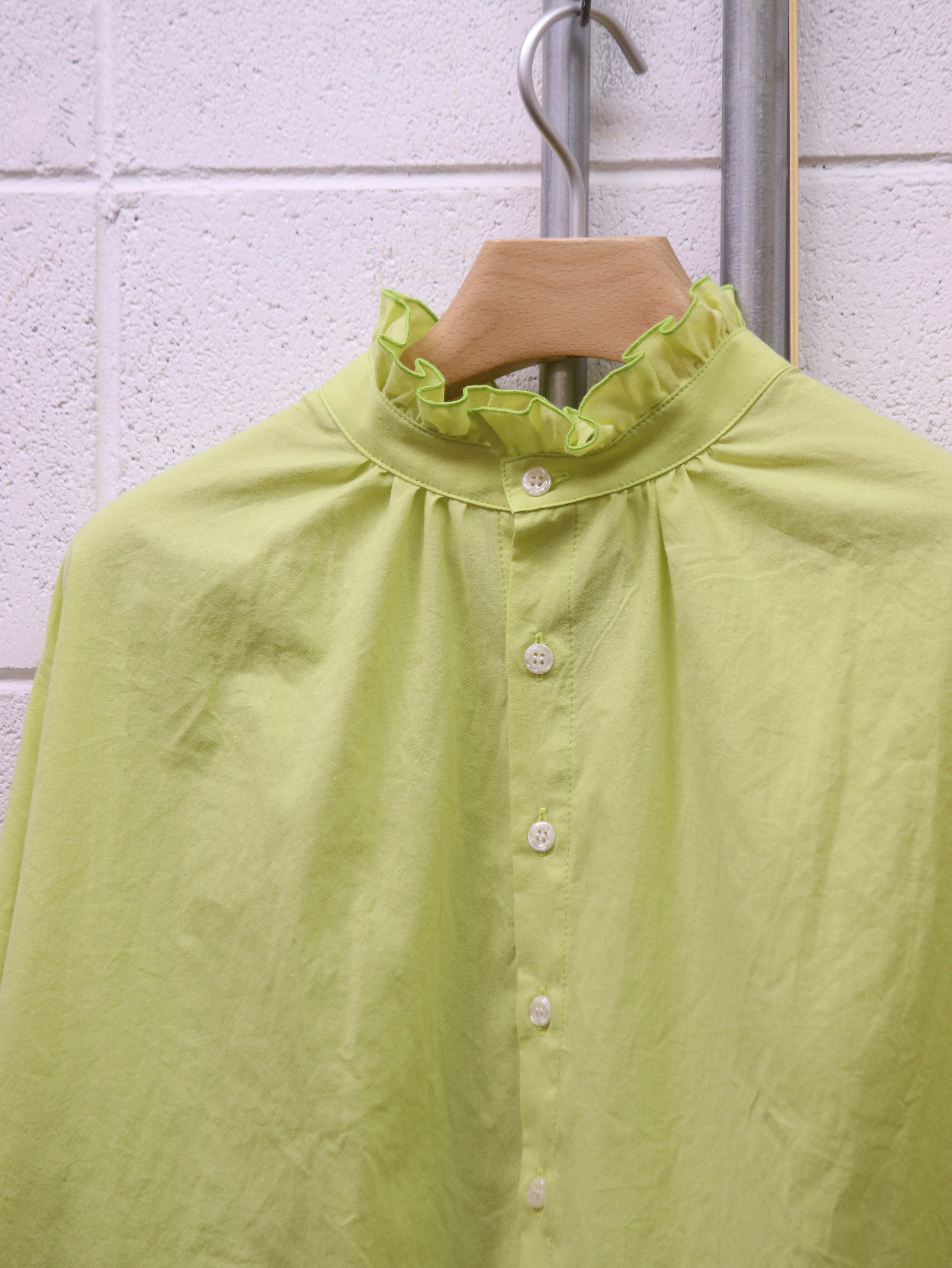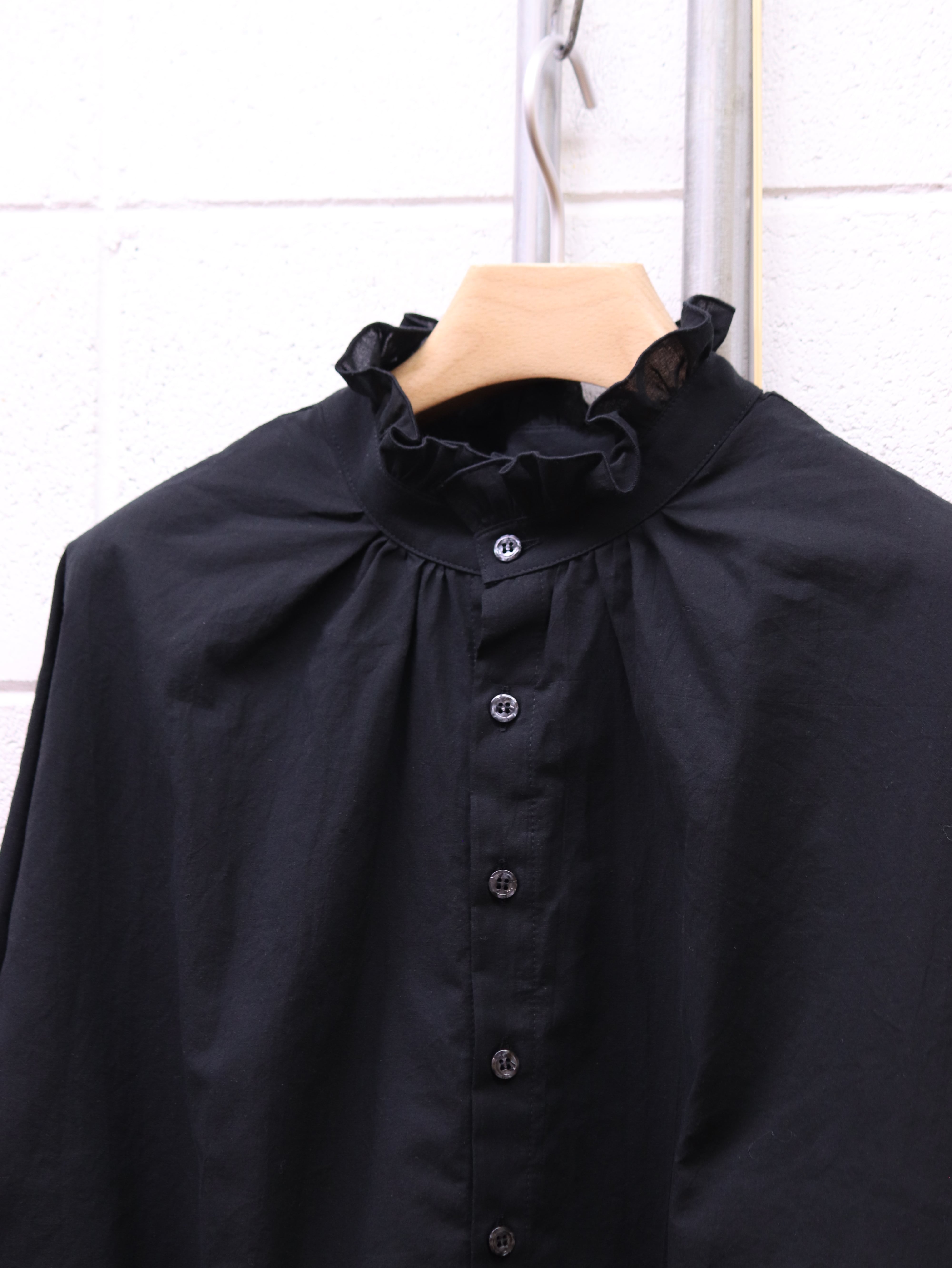 ふんわりと広がるスリーブと、さりげないフリルカラー。クラシカルなムードを漂わせながらも、日常にそっと寄り添う、ブランド定番のふんわりローンチハヤシャツです。前後どちらを前にしても着られる2WAY仕様なので、その日の気分で表情を変えられるのも魅力です。