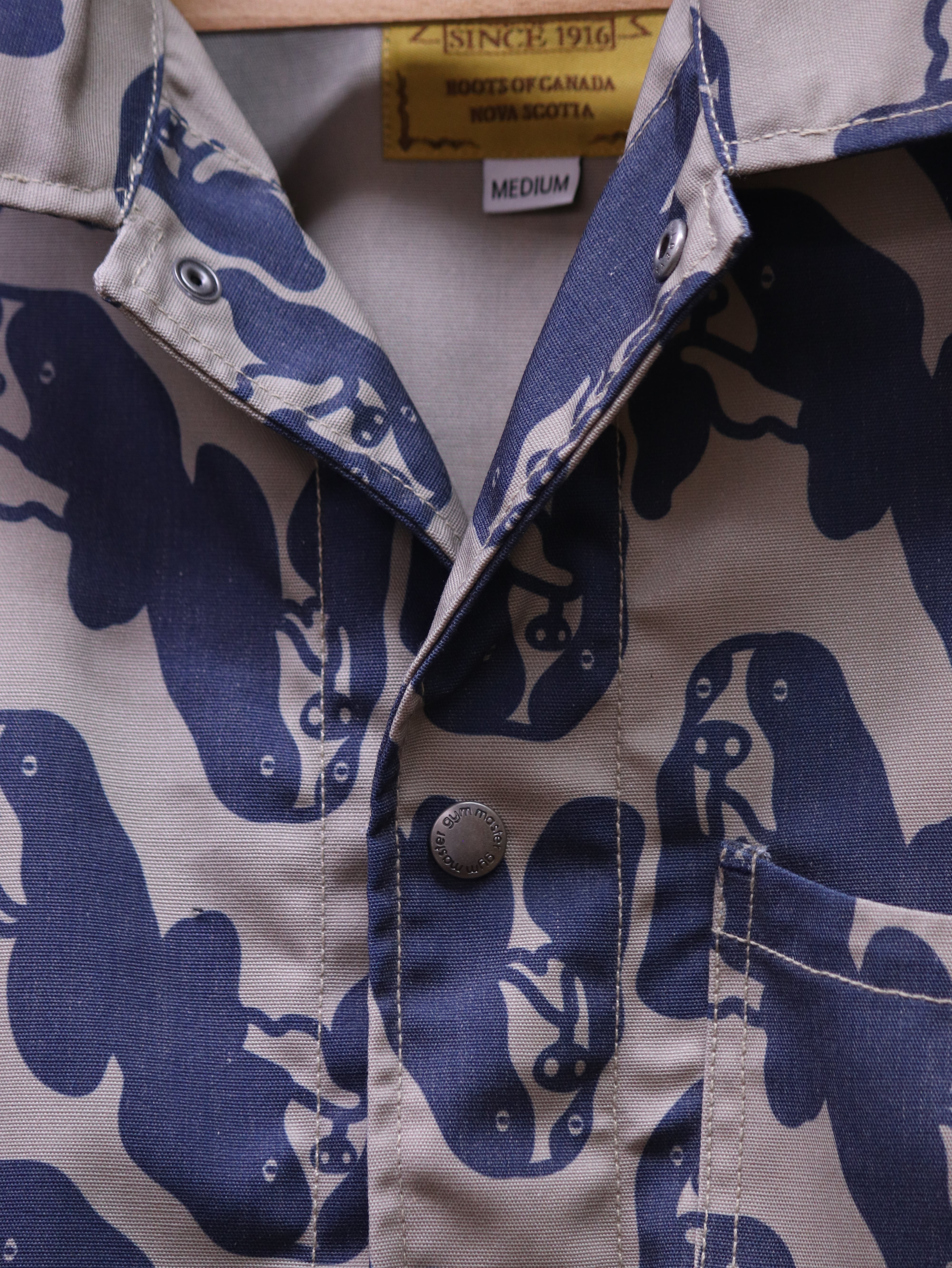 ハンドサイン・落書き・犬の柄でどれもワークテイスト過ぎずカジュアルに馴染む独特の世界観の柄を展開しています。