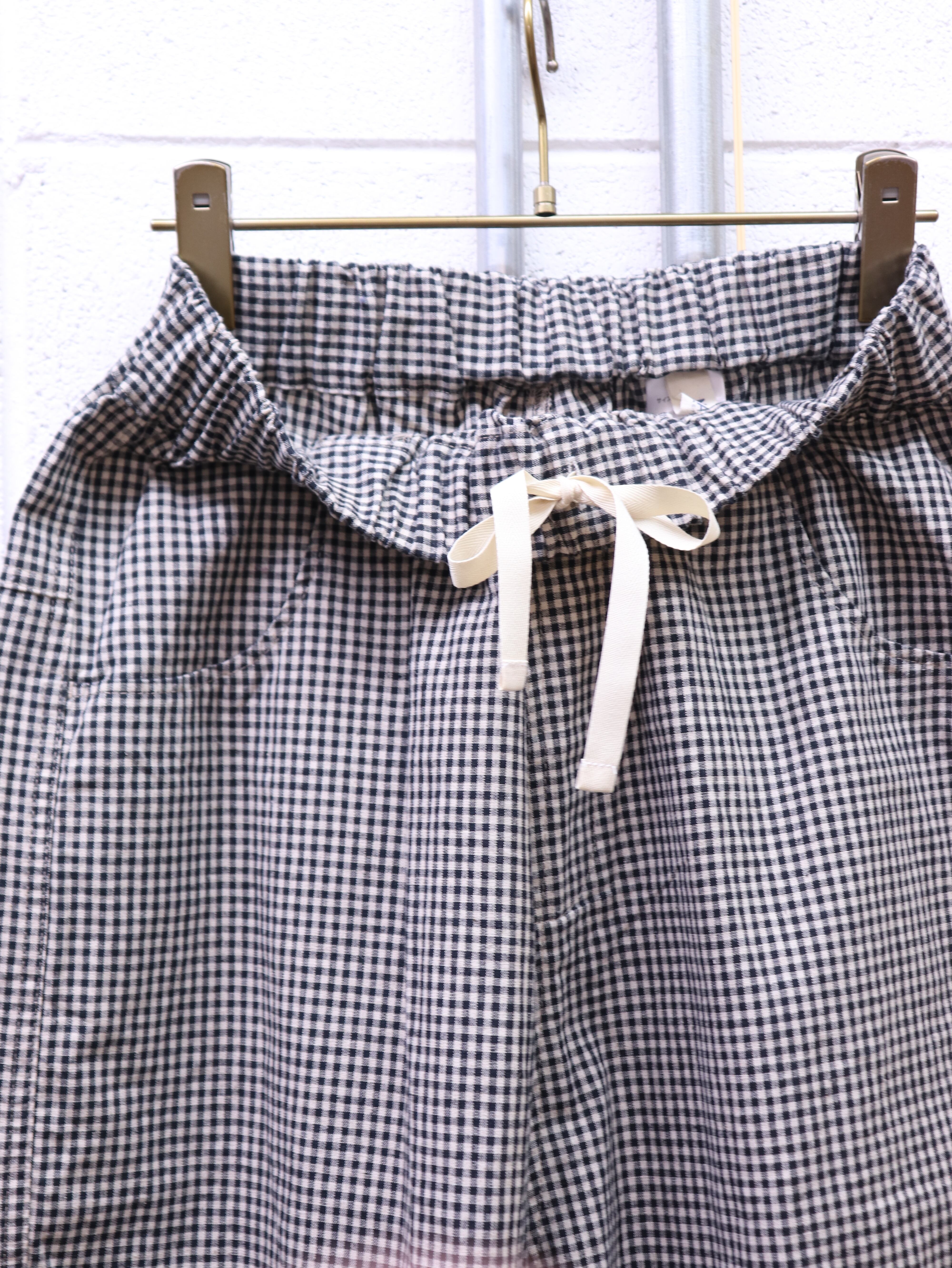ウエストはゴム仕様でゆったりとした着用感。内側の紐でも調節していただけます。
