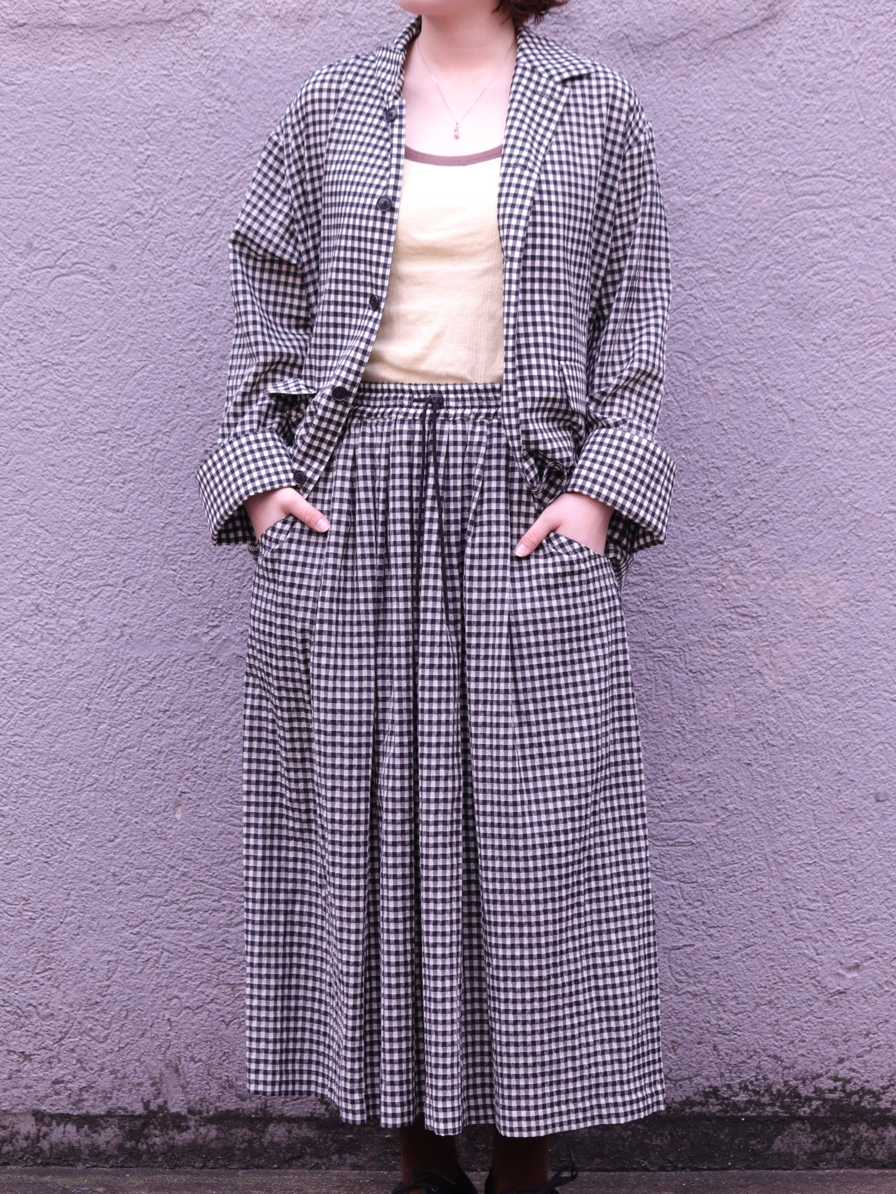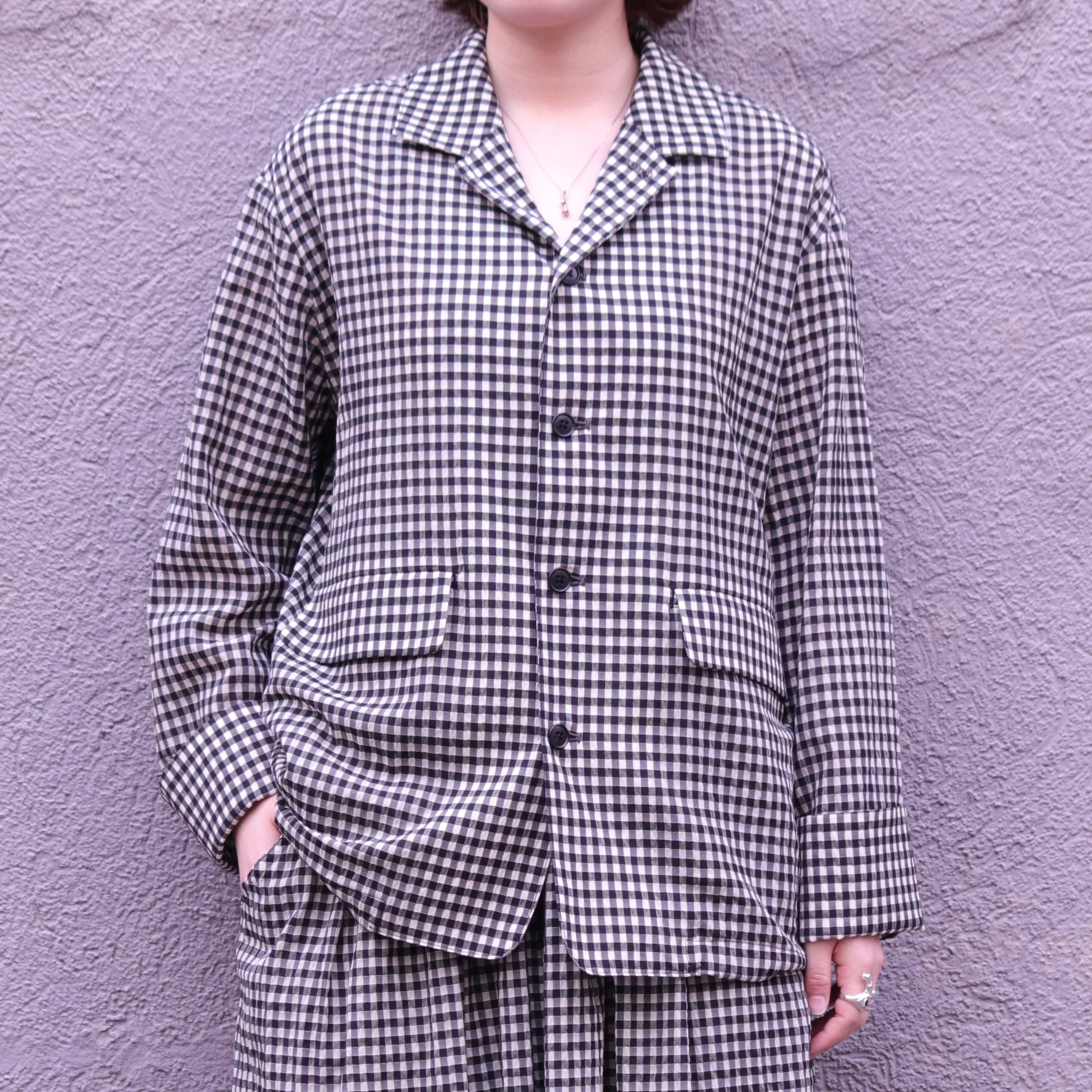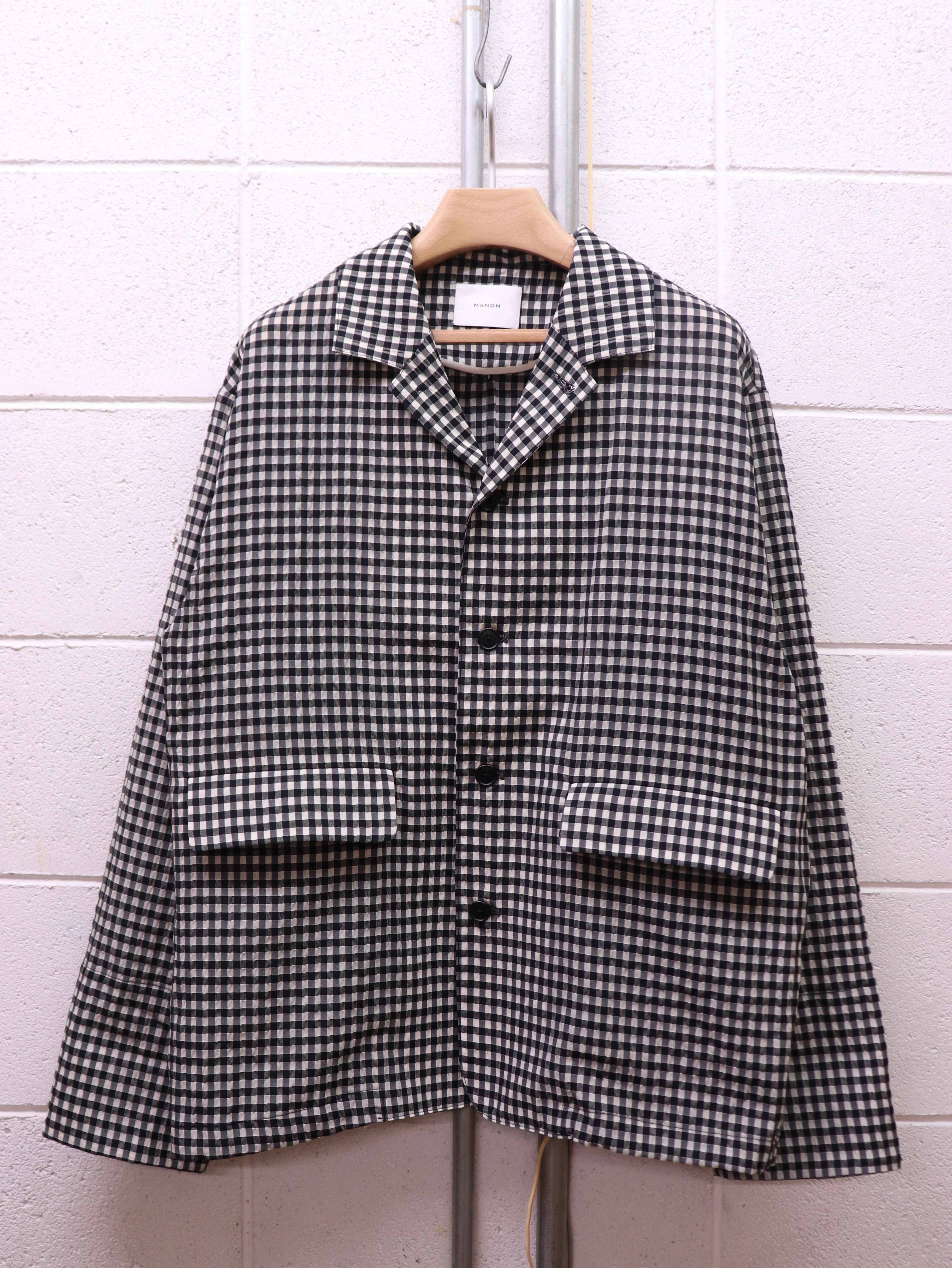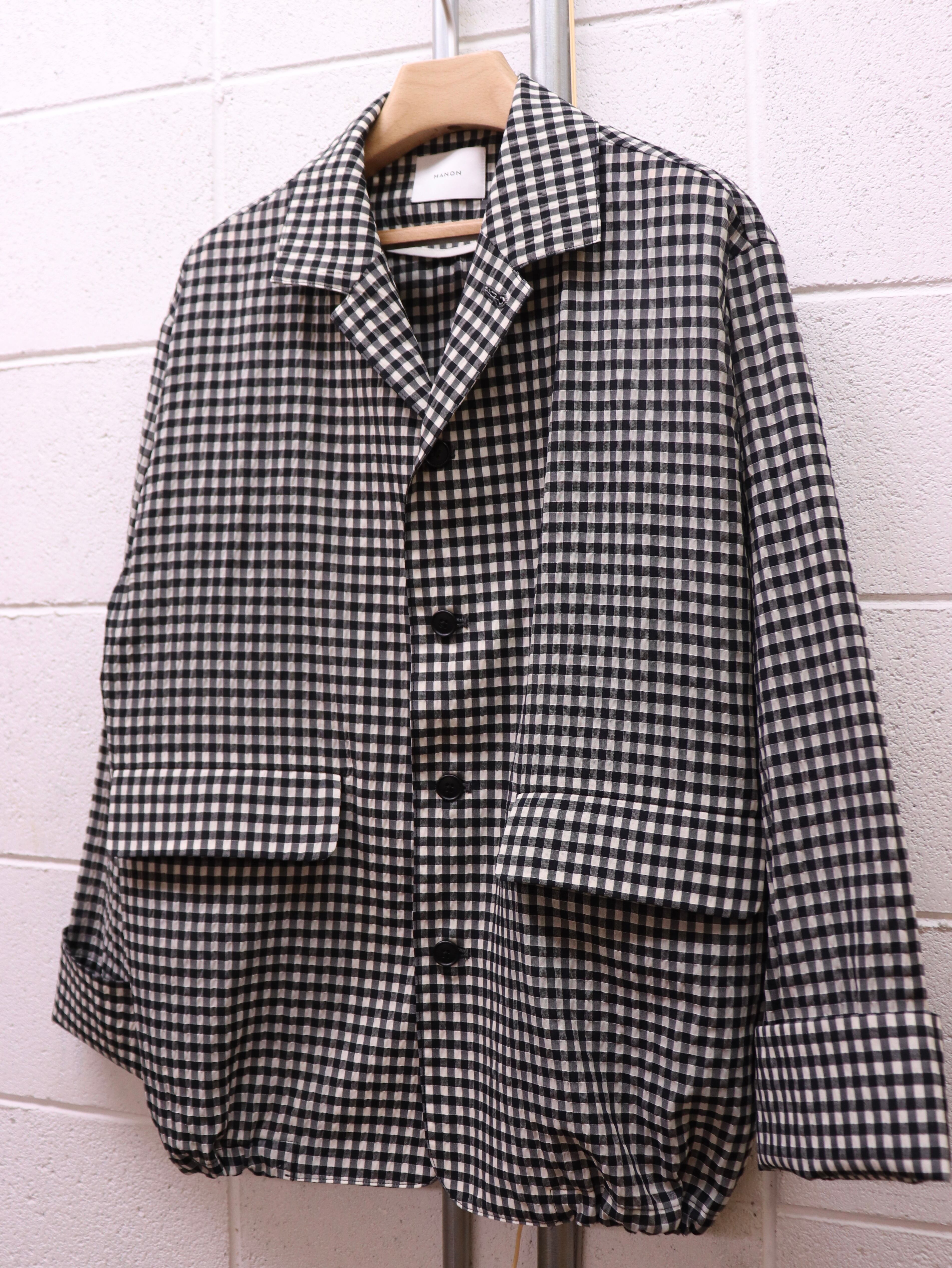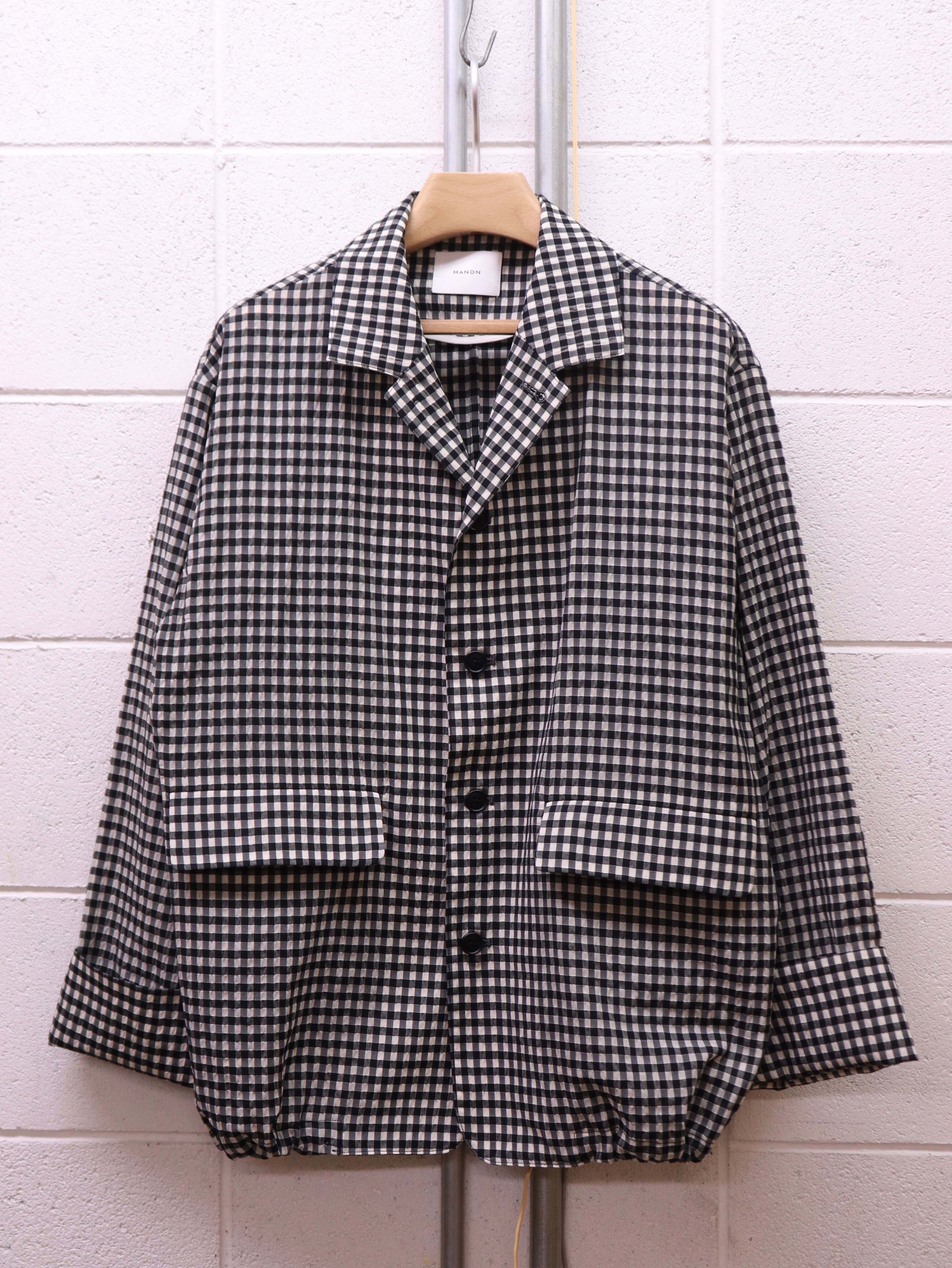 ギンガムチェック柄の軽やかな素材を使用した、柔らかく通気性と動きやすさを重視したコーチジャケットです。シワになりにくく春夏の装いに最適で、快適さと上品さを兼ね備えています。
