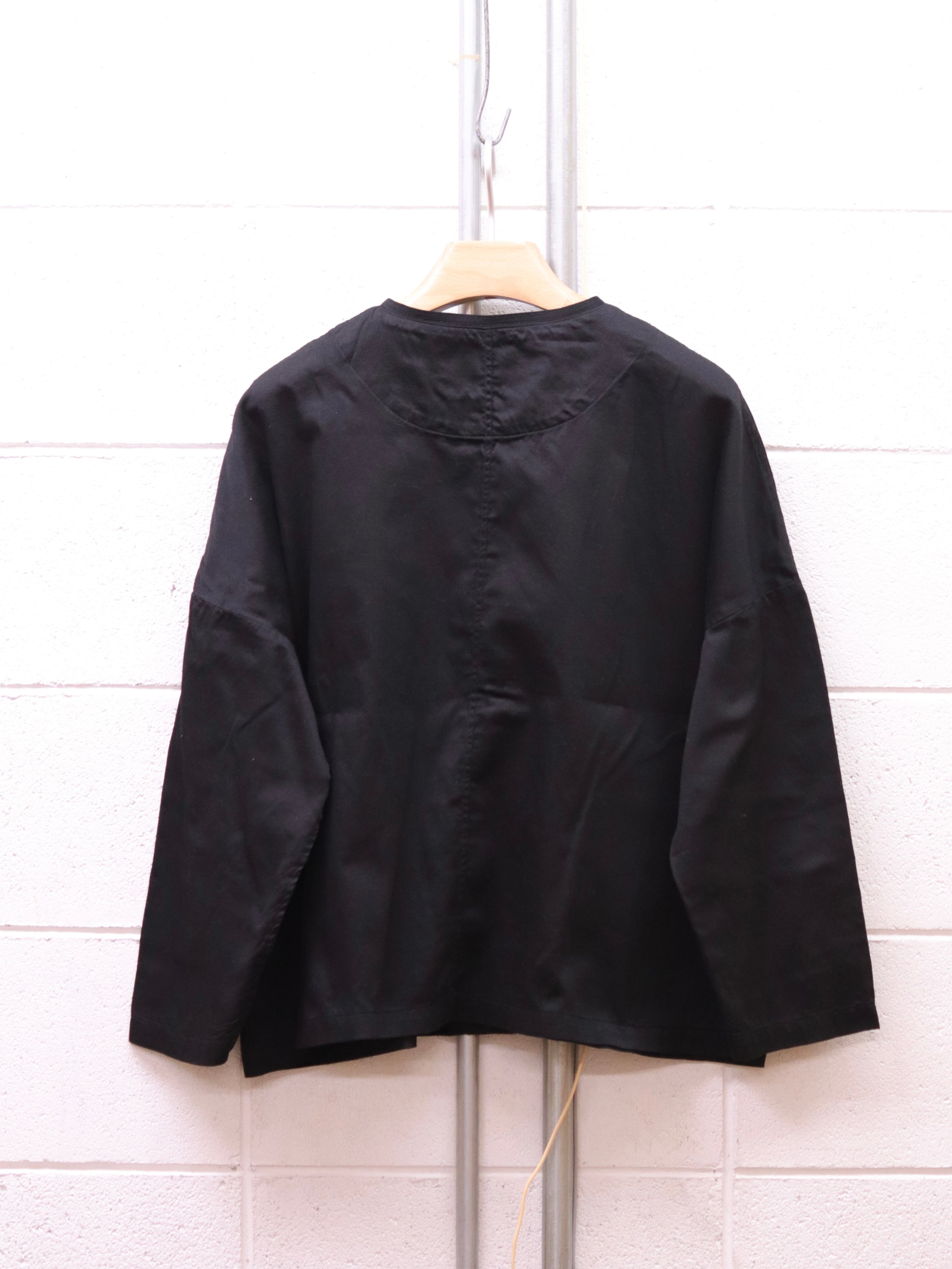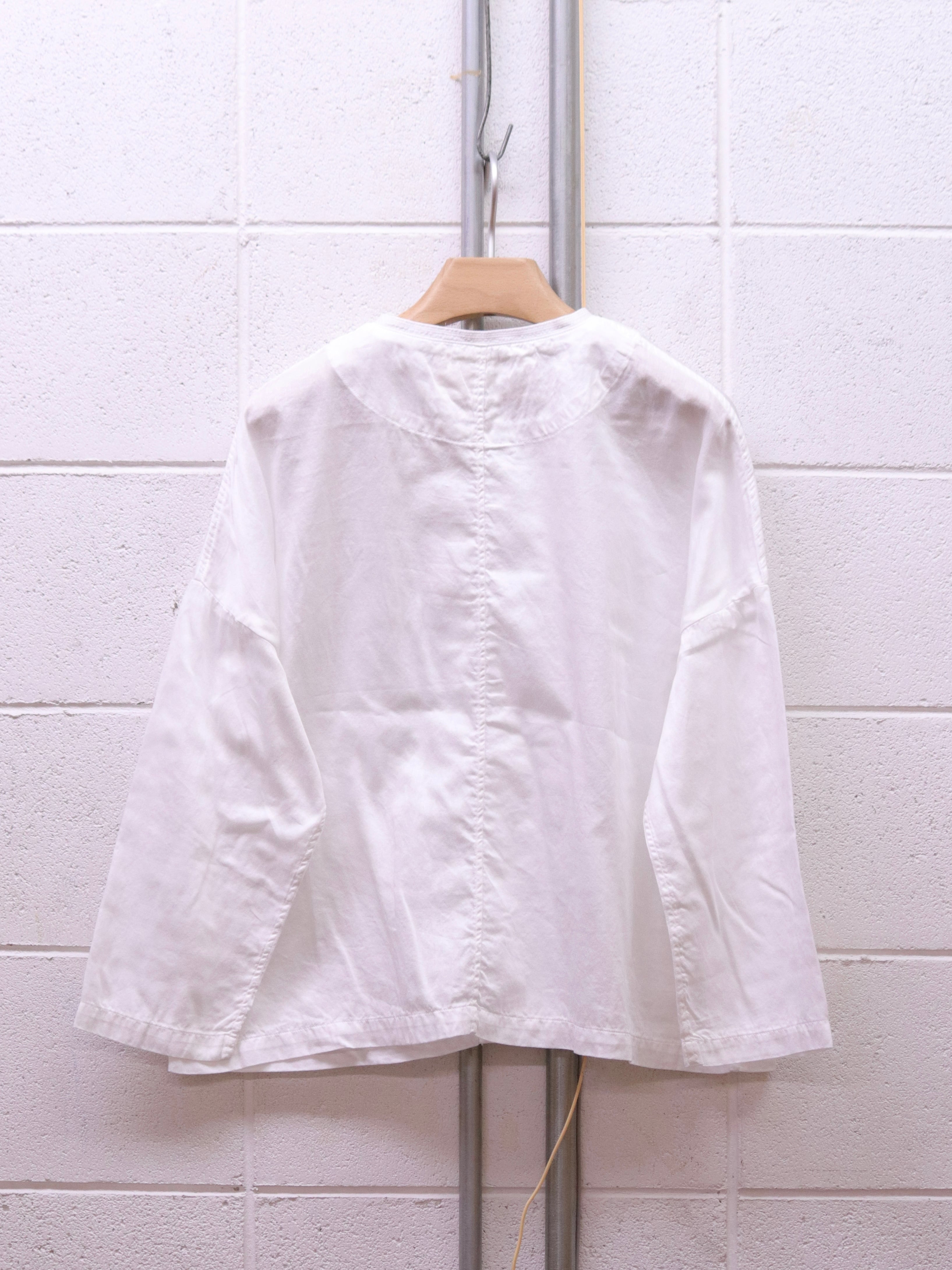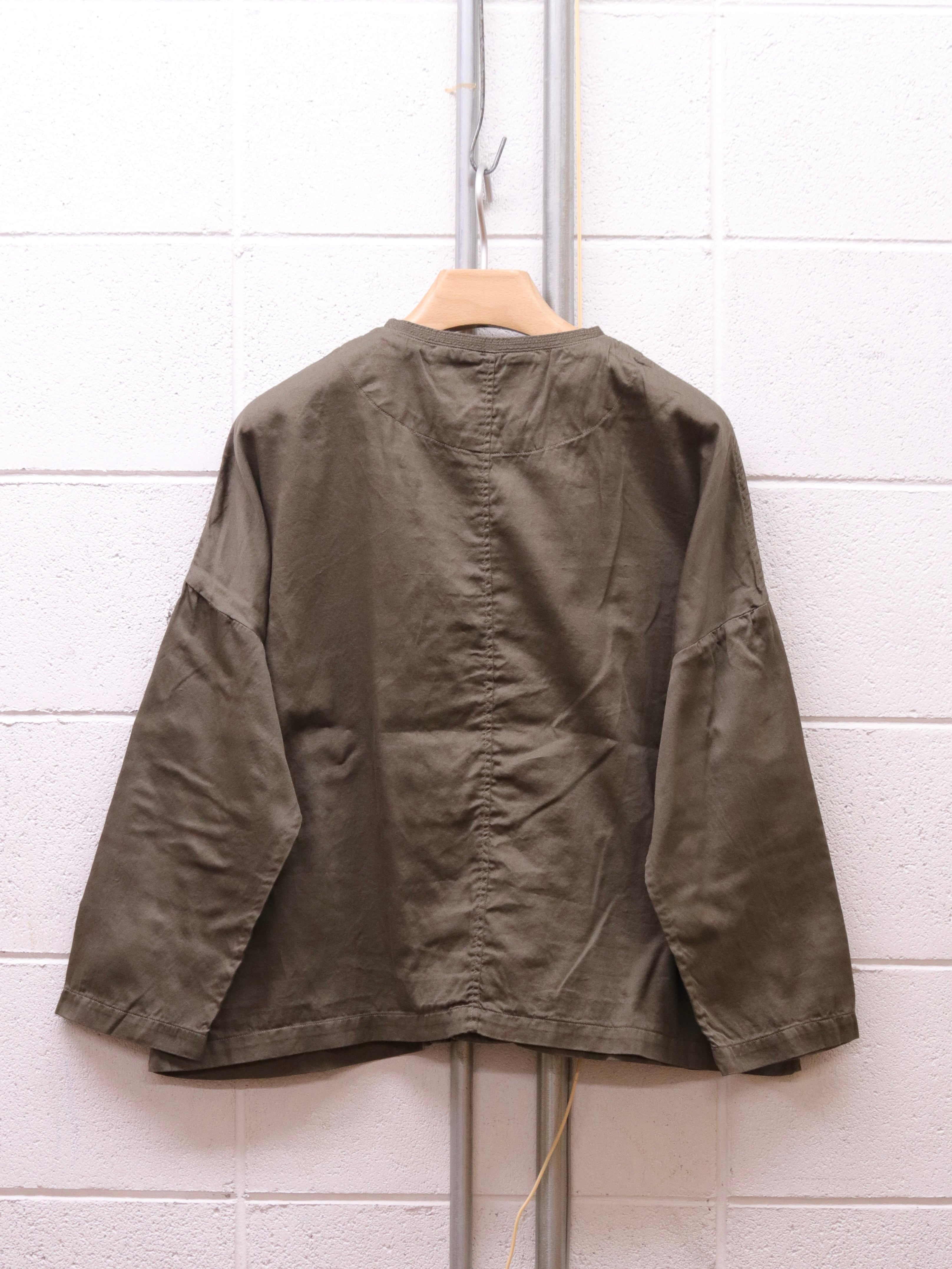 小さな襟が特徴の肩の落ちたゆったりめシルエットのアトリエシャツ。