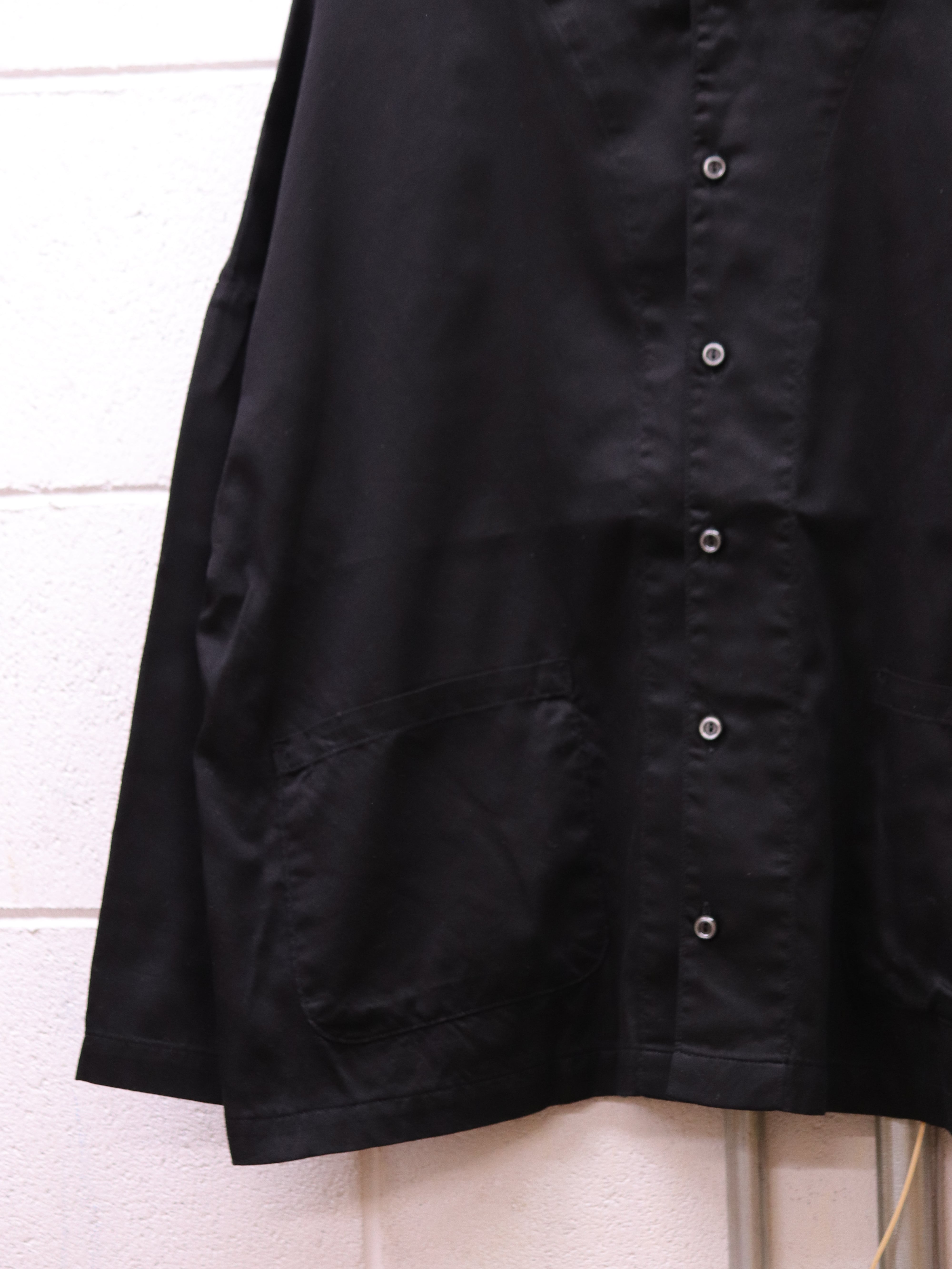 薄手のサテンのシャツ生地は肌触りも滑らかで上品な光沢感があり、洗いざらしの風合いはアンティークな雰囲気を出しています。
