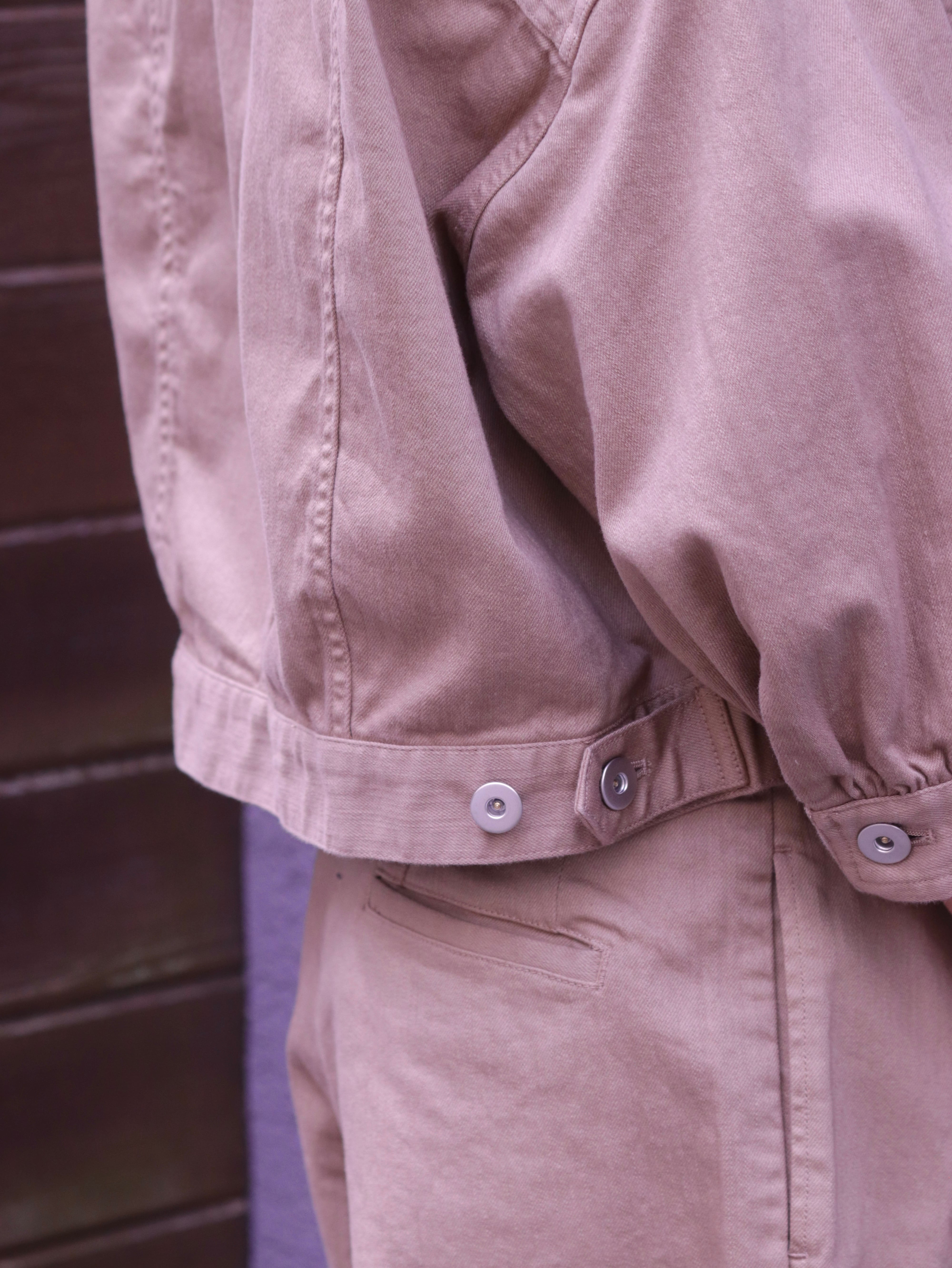 素材には、10ozのムラ糸デニムを採用。SURFACE DYEINGのムラ染め加工を施し表情豊かなカラーデニムに仕上げています。