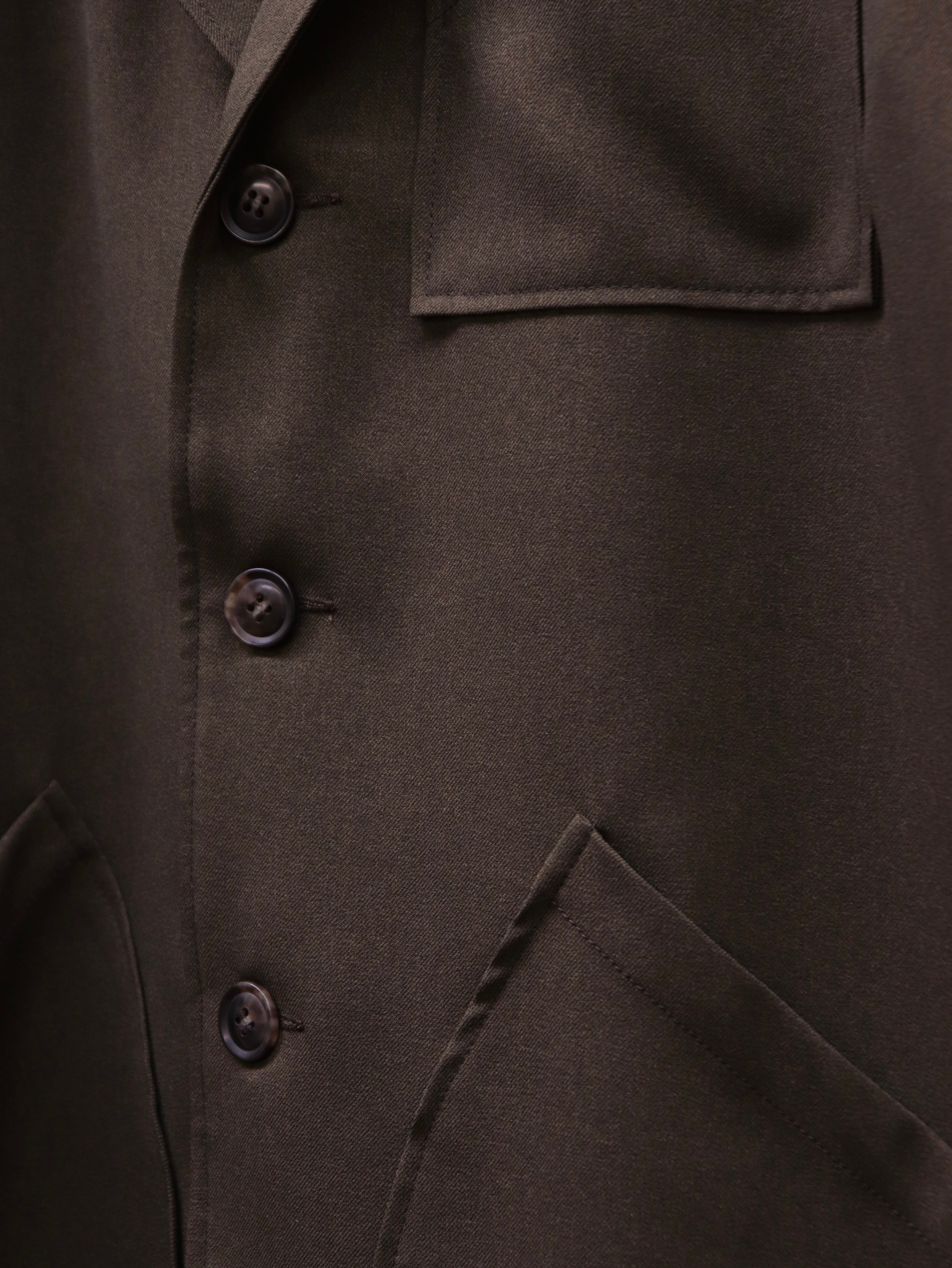 元々ドイツの山林で作業する人々に支給されていたミリタリージャケット、ロガージャケット。胸ポケット、フロントポケットのパッチポケットが特徴的な仕様です。首元の第一釦を閉めると、チャイナジャケットのような首元の変化も楽しめます。