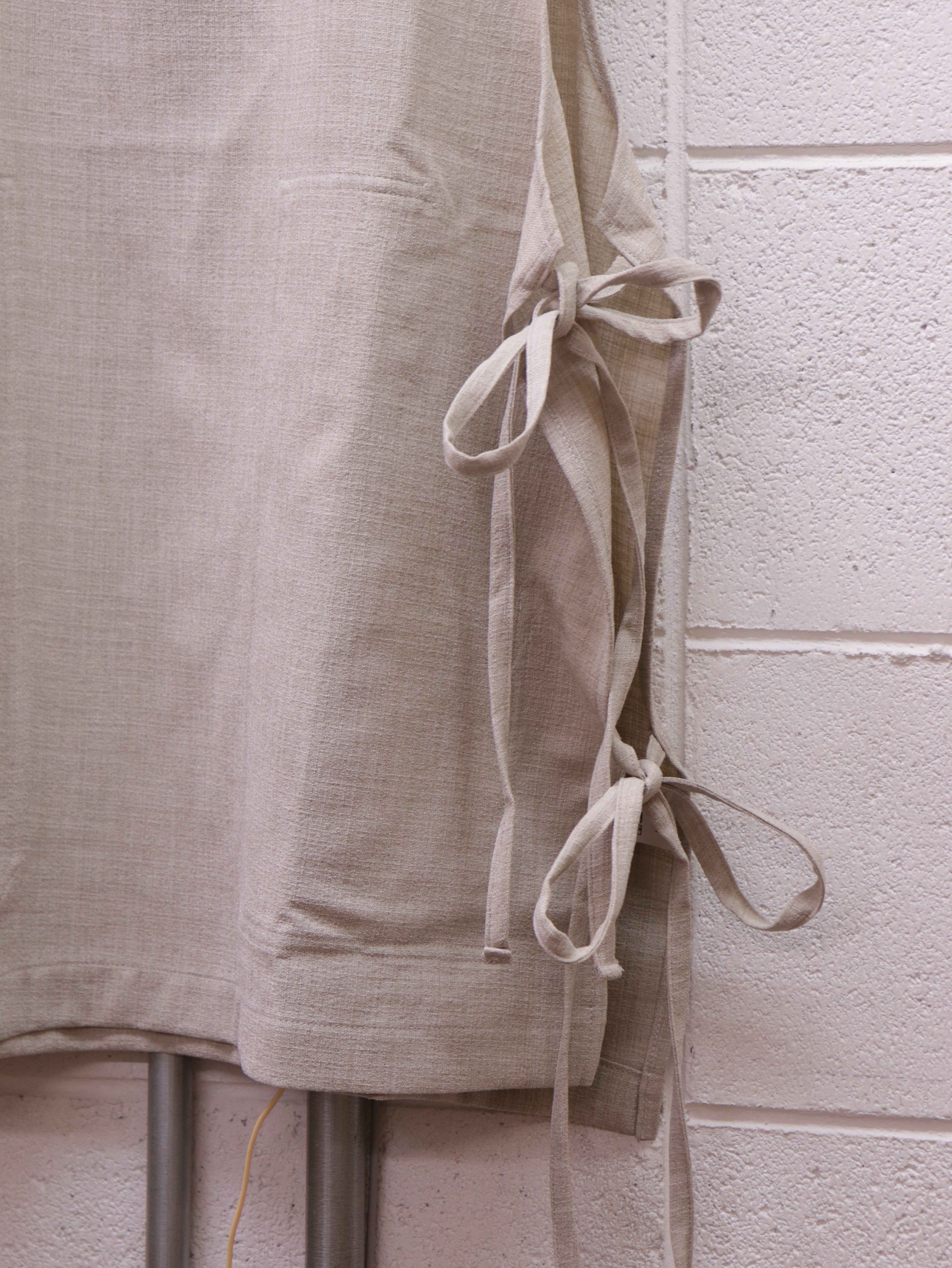 生地には、麻のようなナチュラル感と、ドライな風合いのリネンライク素材、Reflax(R)(リフラクス)を採用。 シワになりにくく毛羽も出にくい多機能素材です。吸水速乾性と通気性が高くイージーケア性に優れています。やや薄手で、ざっくりとしたナチュラルな表情とソフトでありながら肌離れの良いドライさが特徴です。