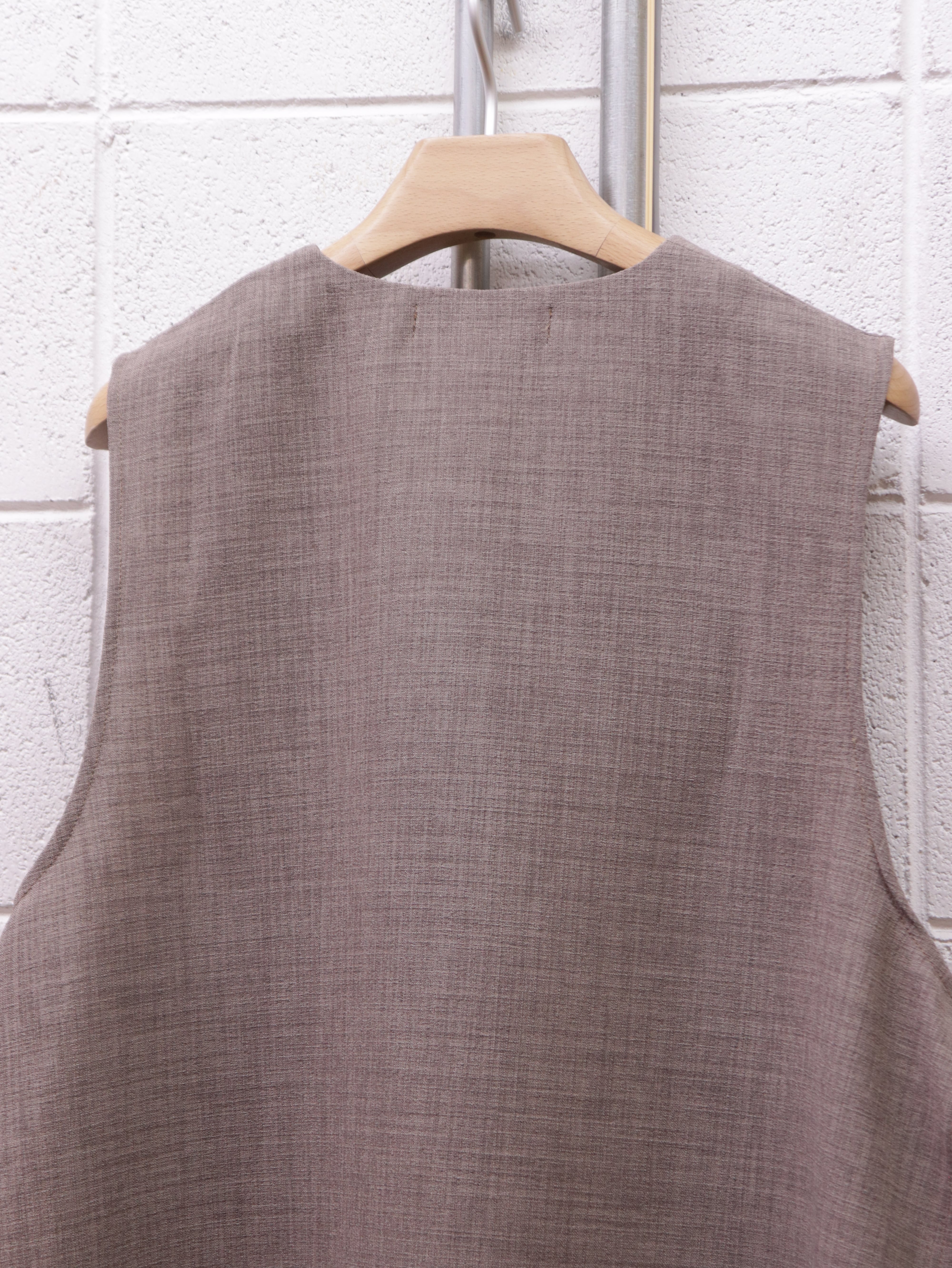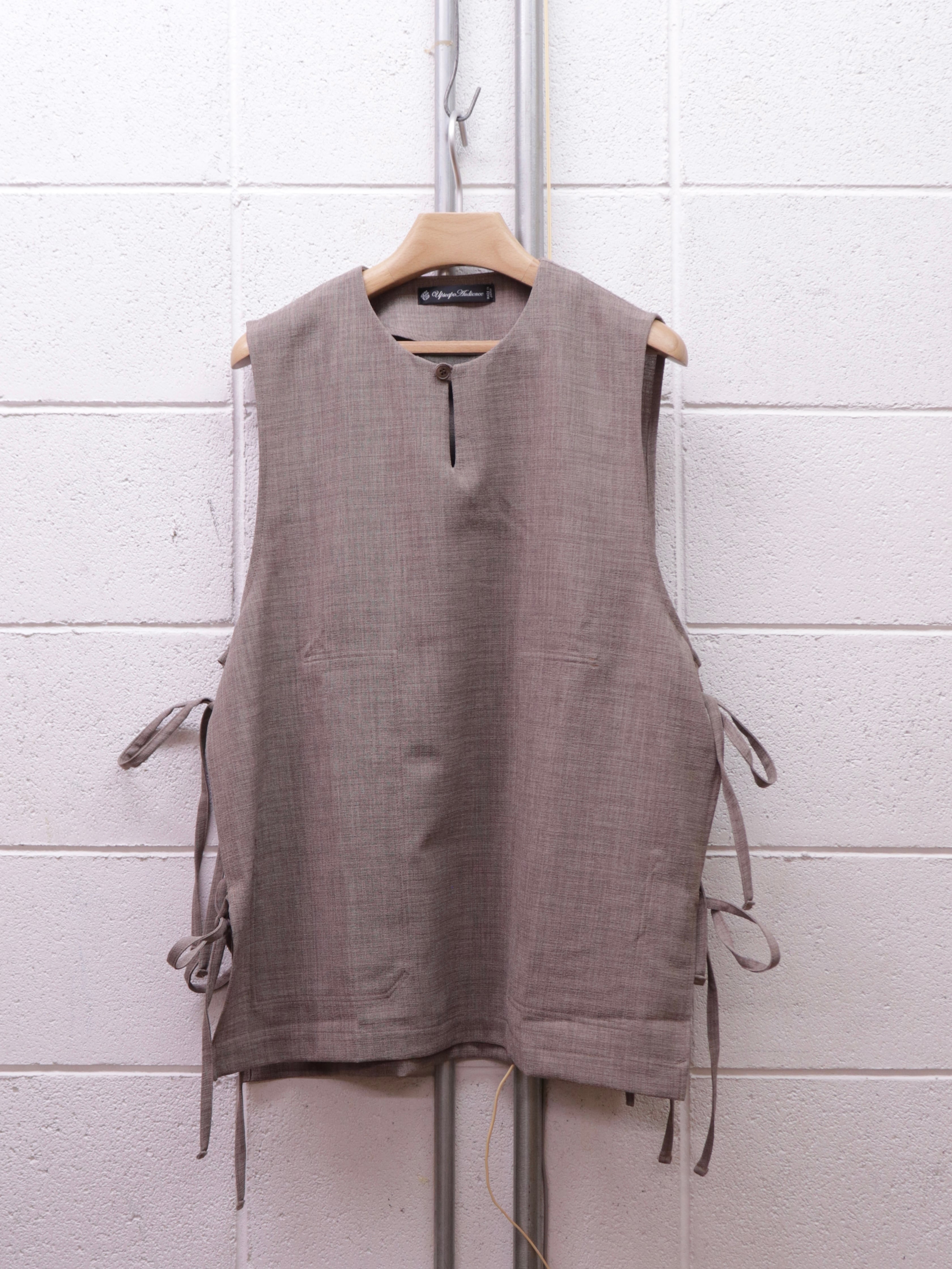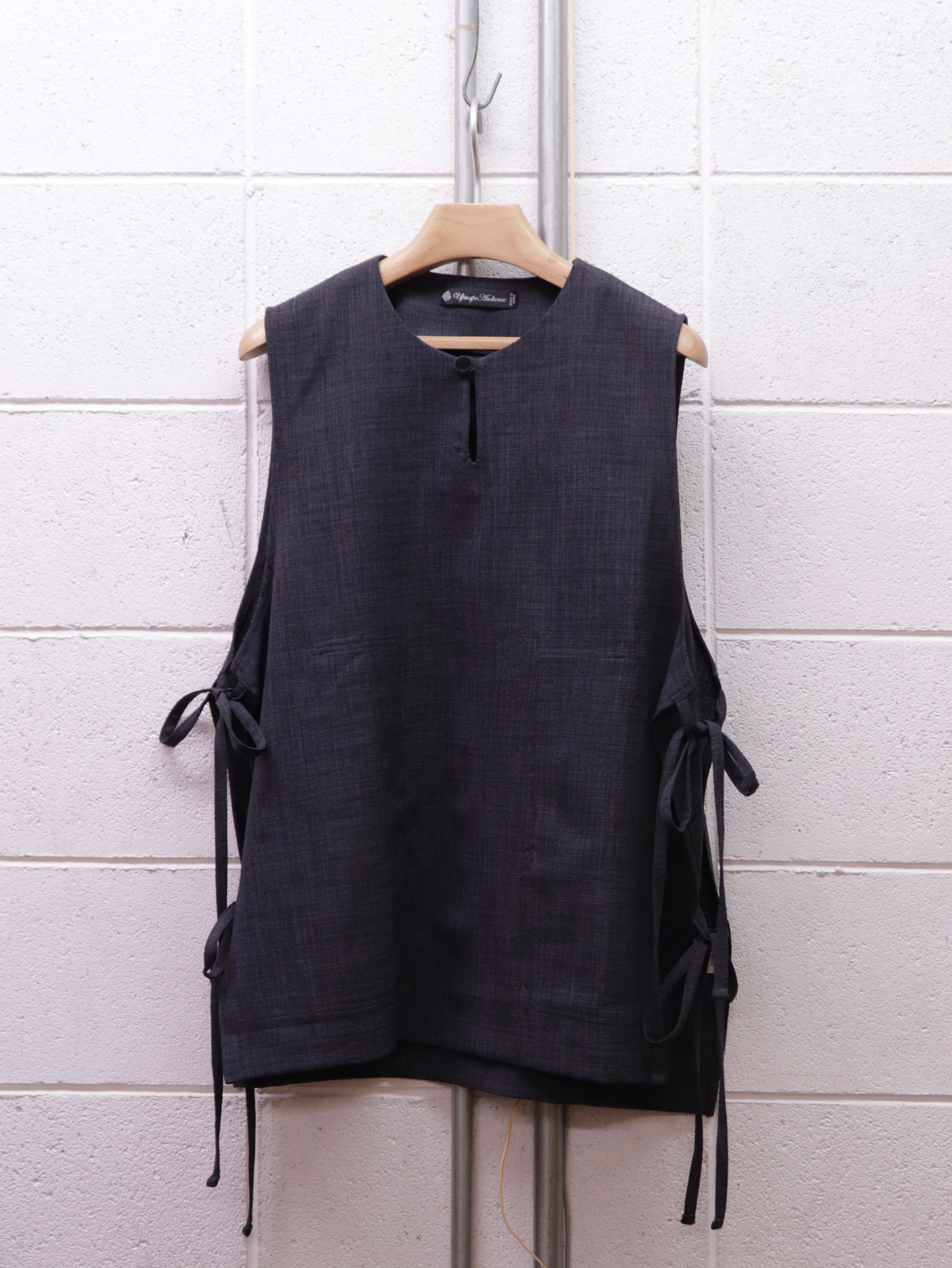 前面裏には大きめな二つのパッチポケットがつき、一見シンプルながら個性的な仕様が詰まった一着です。シャツやカットソー、薄手のニットなどの上にも合わせやすく、あたたかい春夏シーズンにもレイヤードがしやすい仕様です。