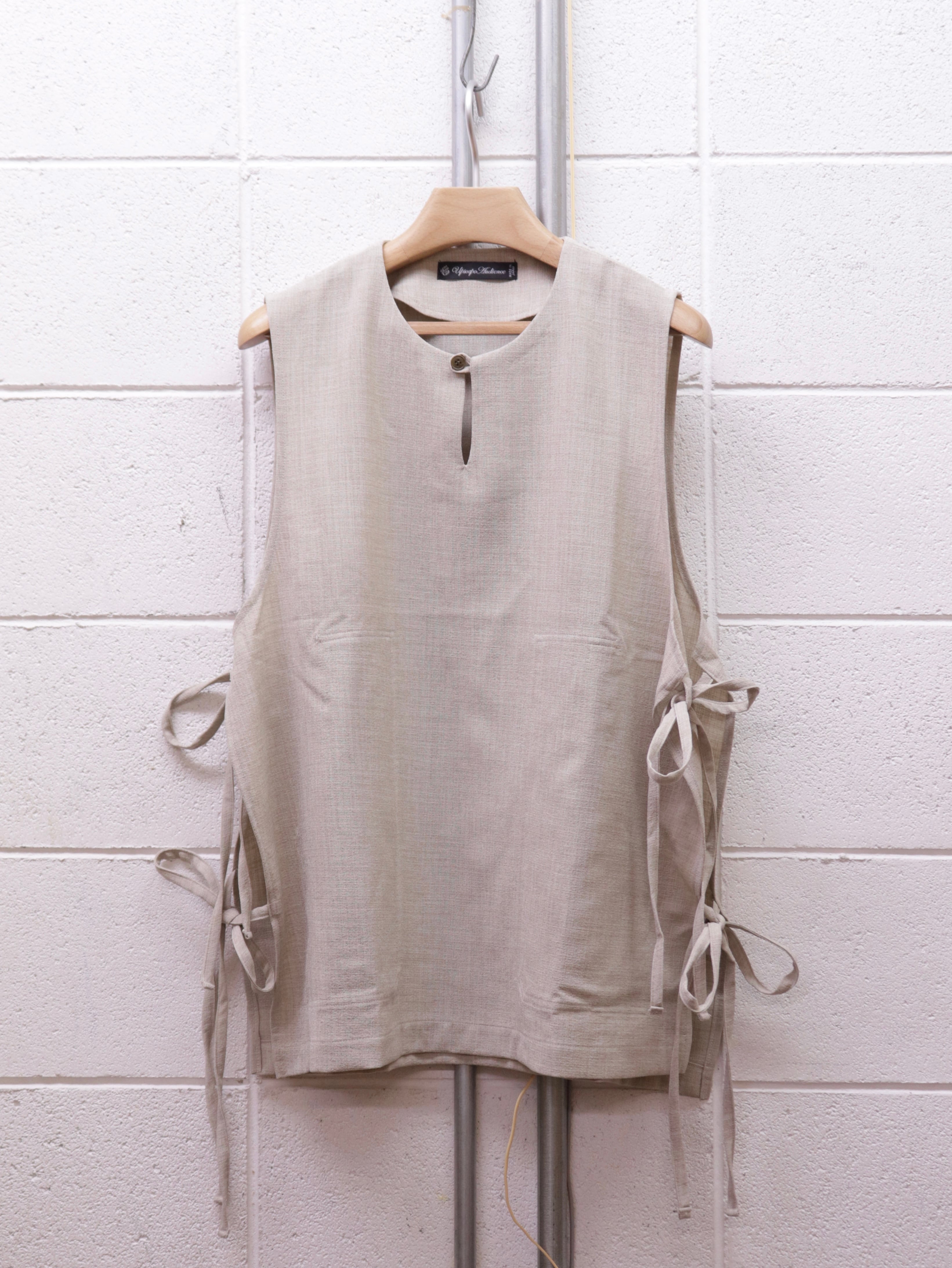 フランス軍で熱帯用地用に採用されていたGAOベストをイメージソースに、通気性を良くするためにサイドが開け、ループで繋がれているデザインに仕上げた一枚。