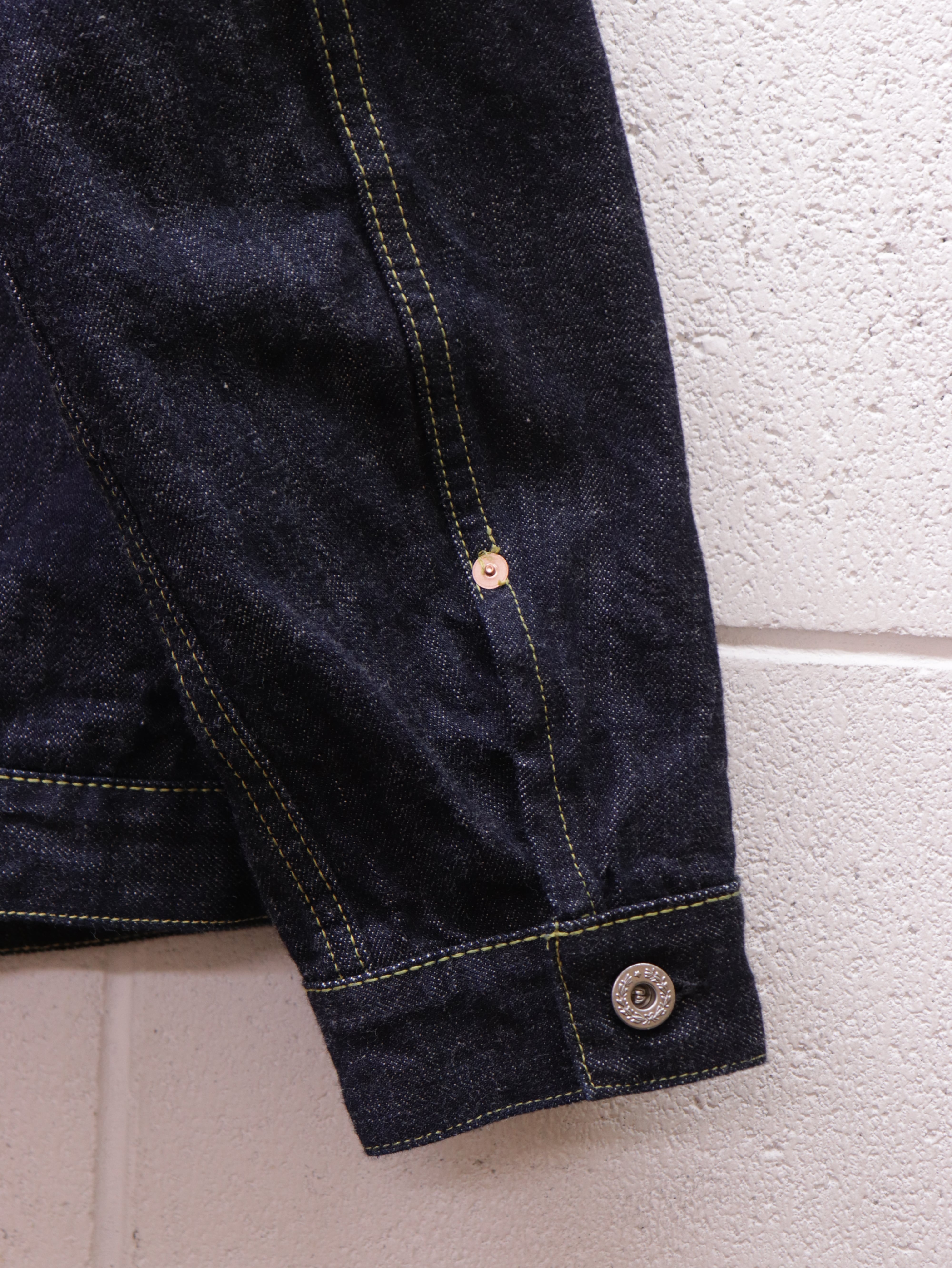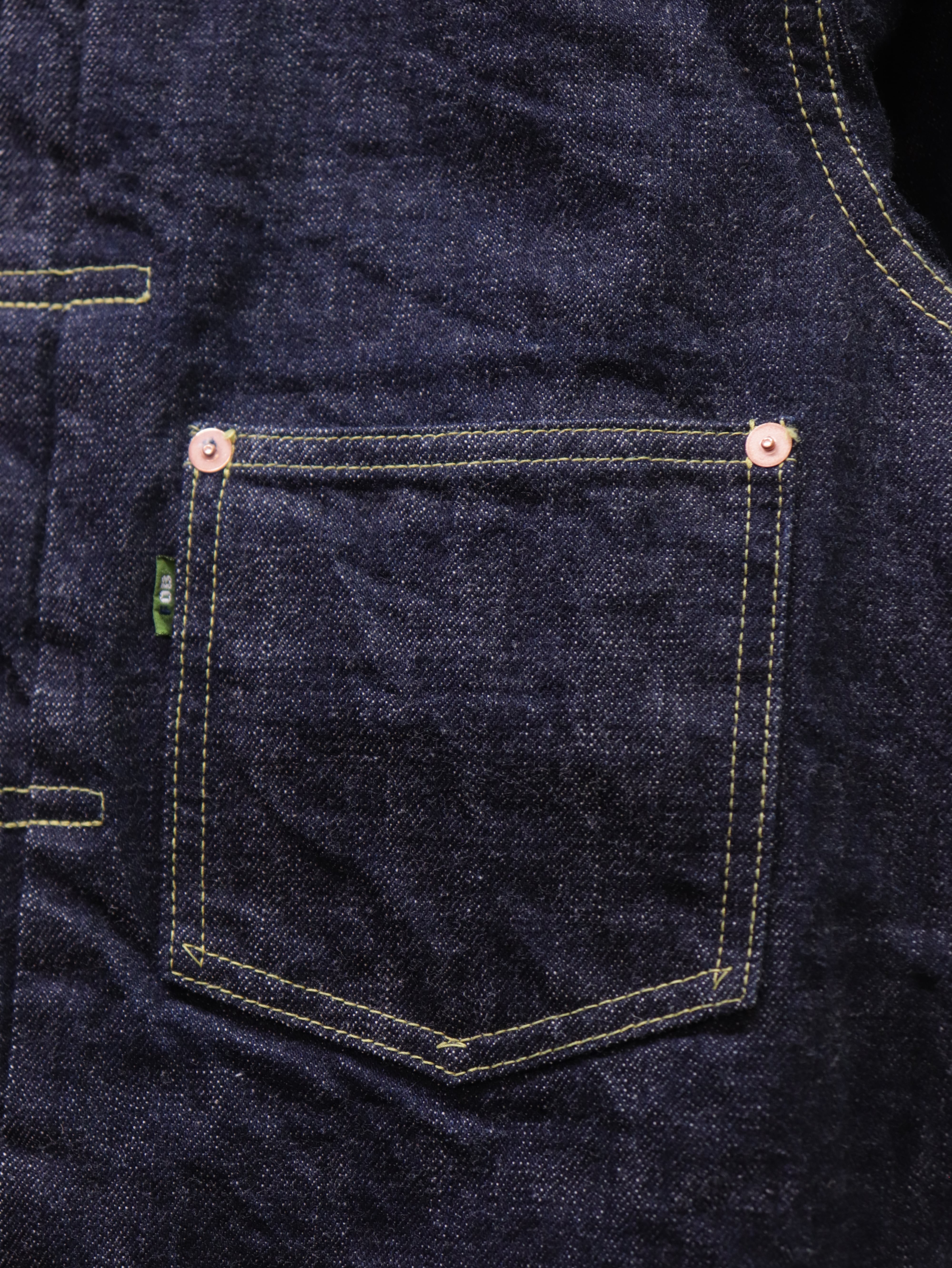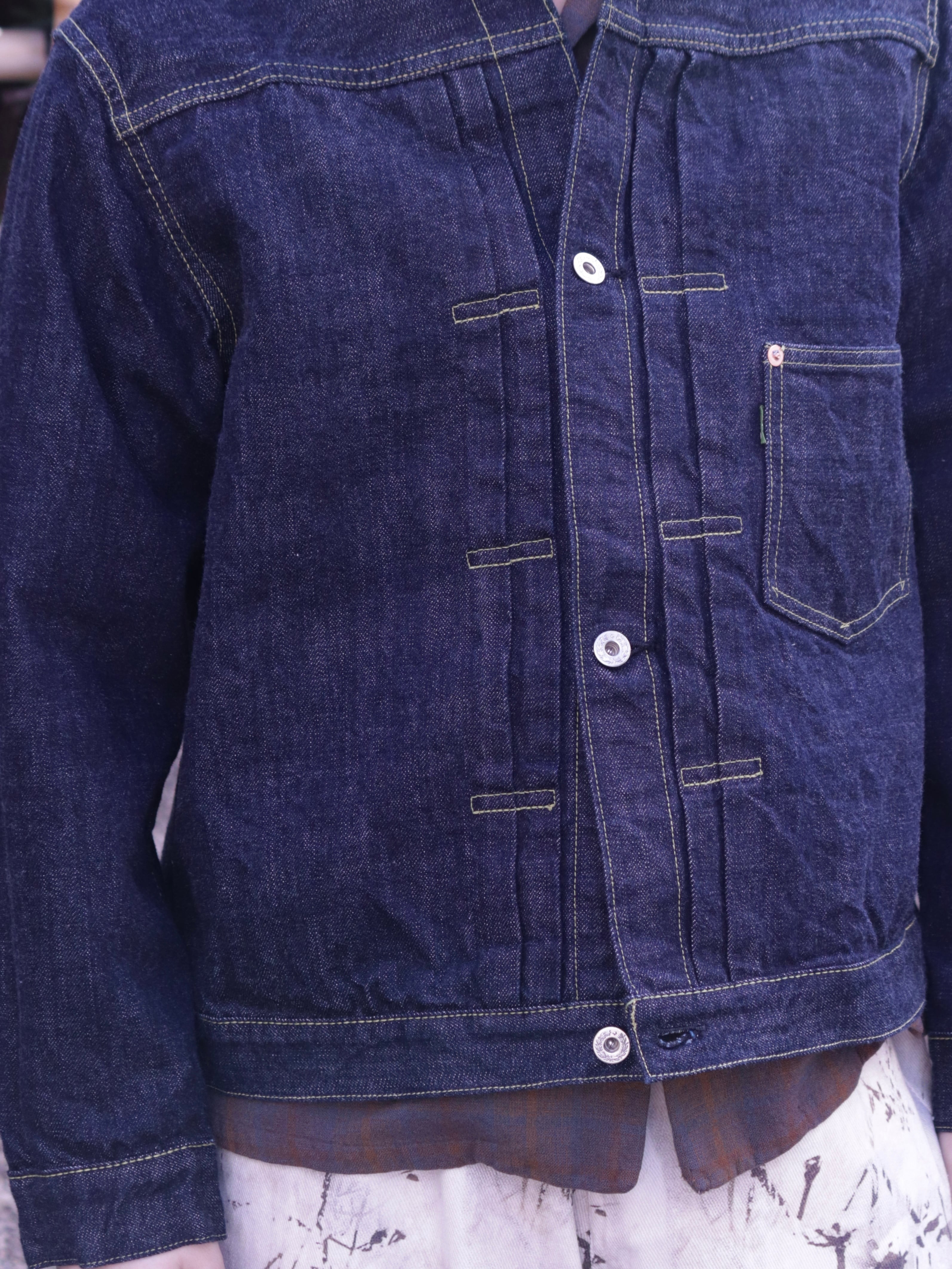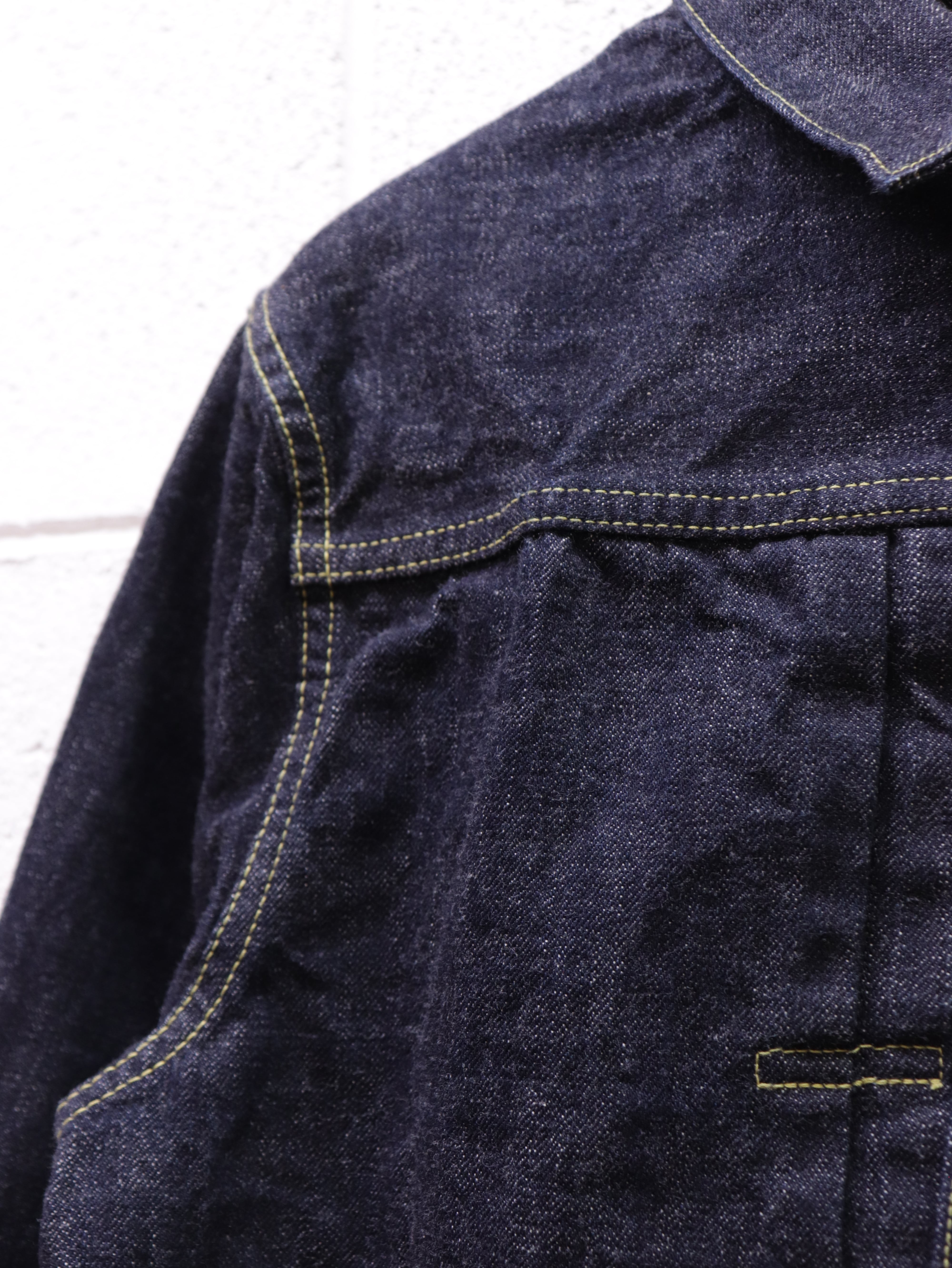 第二次世界大戦期、資材不足のなかで生産されていた“通称 大戦モデル”をモチーフにしたデニムジャケットです。