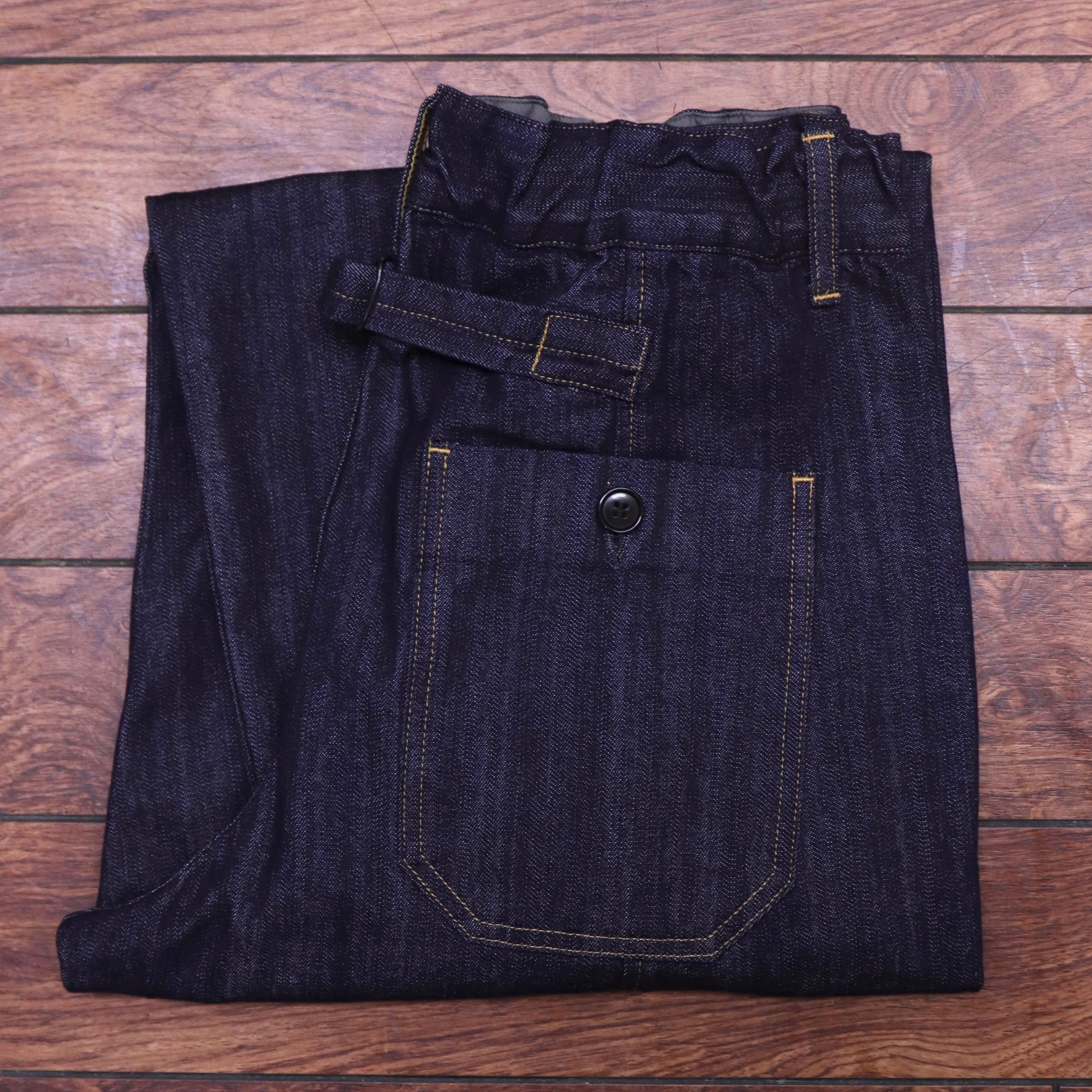 ムラ糸使いが特徴の10ozデニムを使用。ソフト加工を施しているので柔らかい質感が特徴です。